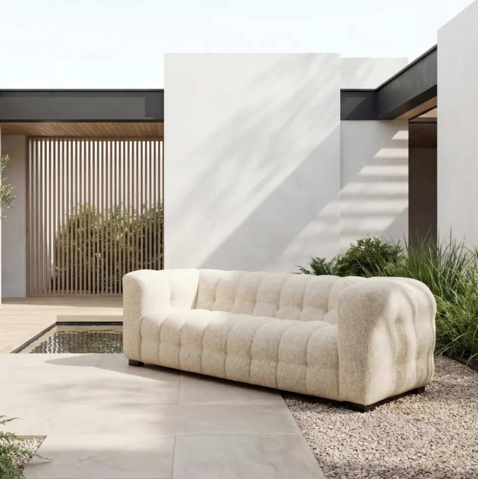 De kussens zijn gevuld met Quick Dry Foam, een speciaal schuim met een open celstructuur waardoor water snel wordt afgevoerd en lucht goed kan circuleren. Zo drogen de kussens sneller na een regenbui en blijft de bank perfect geschikt voor het buitenleven.
