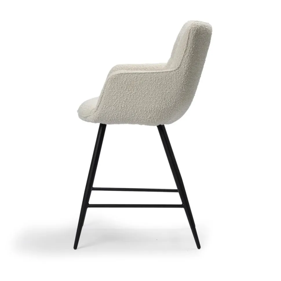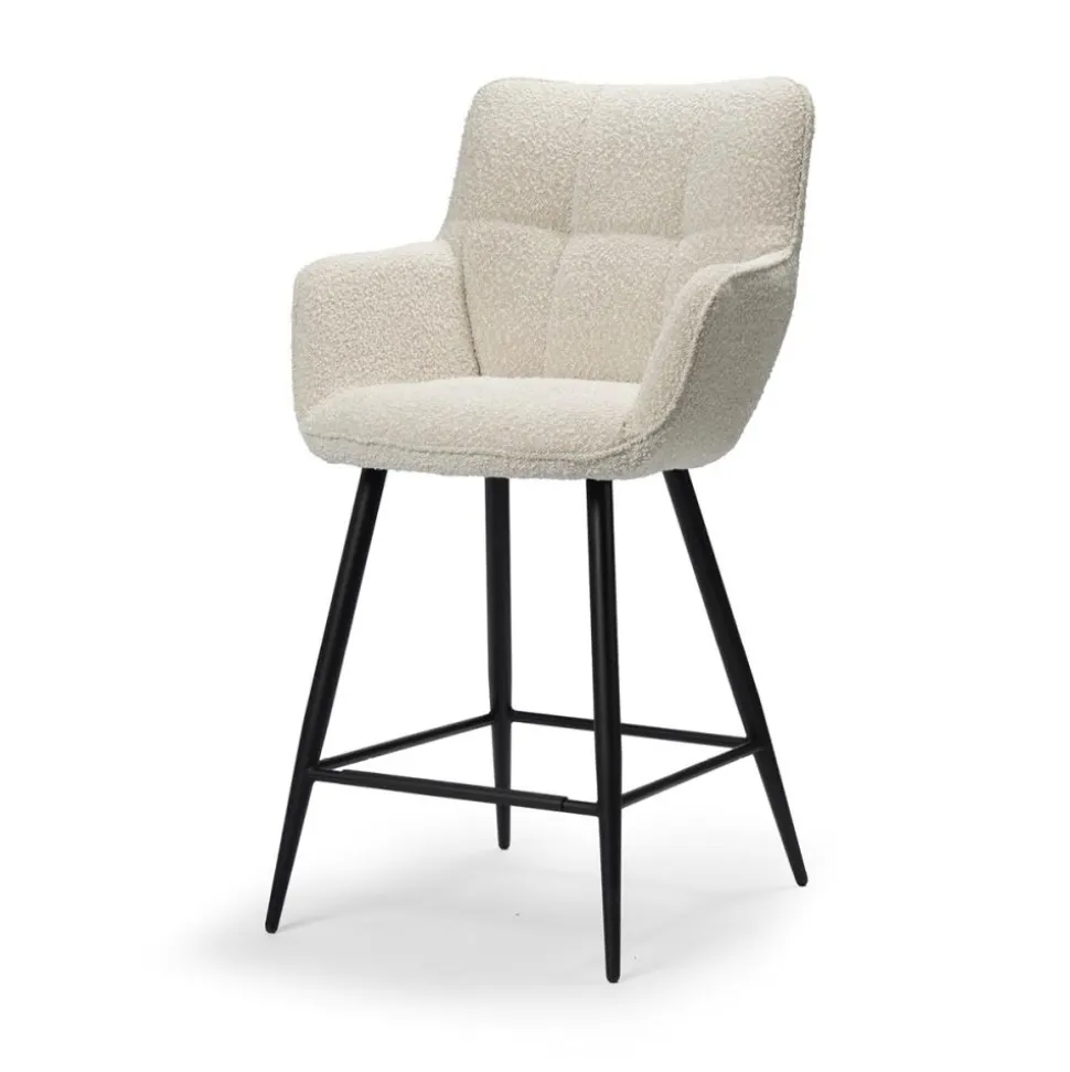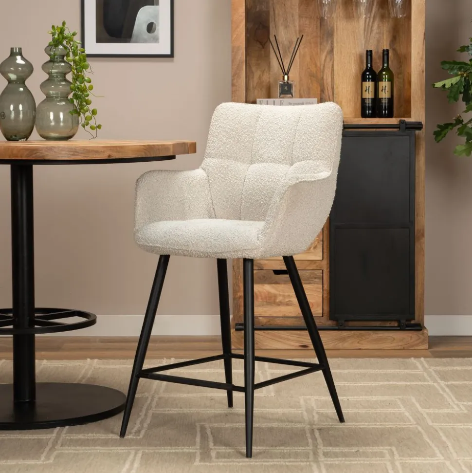 Barstoel Remco is een trendy stoel bekleed met een fijne stof en heeft een zeer degelijk metalen onderstel. De kuipstoel is voorzien van armleuningen en een hoge rugleuning wat hem geschikt maakt voor lange, gezellige avondjes aan de bartafel. Verkrijgbaar in 2 kleuren: grijs & ivoor. Leuk om te combineren met de eetkamerstoelen Tara!