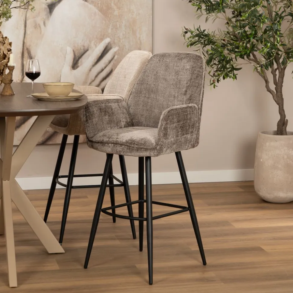 Lekker hoog tafelen doe je op barstoel Yuna! Deze comfortabele en stijlvolle barstoel is de perfecte aanvulling voor jouw bar- of countertafel. Deze stijlvolle barstoel is perfect voor wie op zoek is naar zowel comfort als design in één. De zachte bekleding en het strakke design maken Yuna een prachtige aanvulling voor ieder interieur. Barstoel Yuna is verkrijgbaar in twee neutrale tinten: beige en bruin. Direct uit voorraad leverbaar, zodat je er snel van kunt genieten.