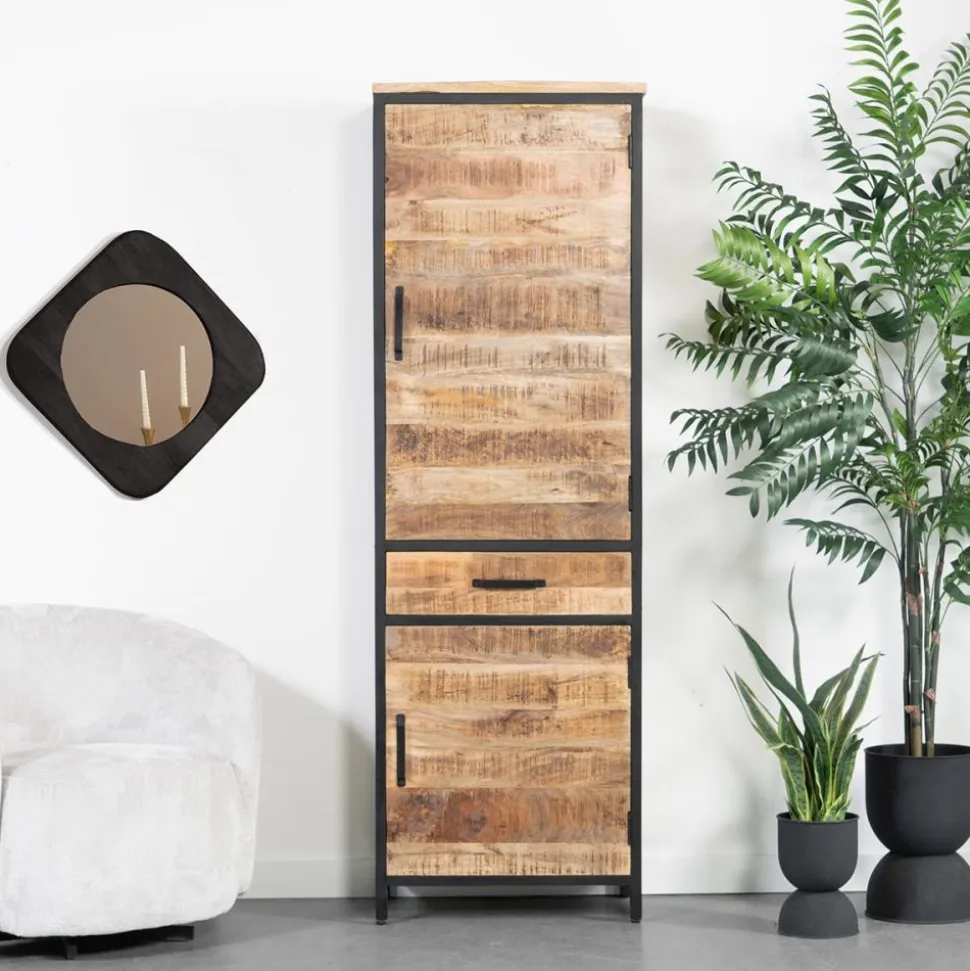 Dit meubel is onderdeel van de woonserie Jakarta. Deze stoere meubelserie kenmerkt zich door een gave combinatie van mango hout en metaal. De meubels zijn strak afgewerkt en zorgen voor een industriële sfeer in je woonkamer. De serie heeft ruime opbergladen en metalen handgrepen. De woonserie bestaat uit een barkast, bergkast, boekenkast, dressoir, salontafel en tv-meubel. Mix and match en maak je woonkamer compleet!