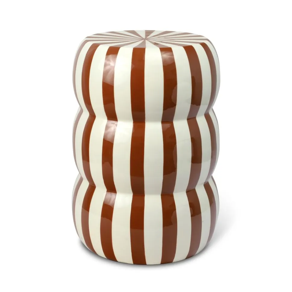 Geef je interieur een speelse en moderne touch met bijzettafel Tina. Het opvallende streeppatroon en de ronde vormen maken deze tafel een echte blikvanger in elke kamer. Perfect te gebruiken als stijlvol accent naast je bank of als praktische bijzettafel voor je favoriete woonaccessoires.