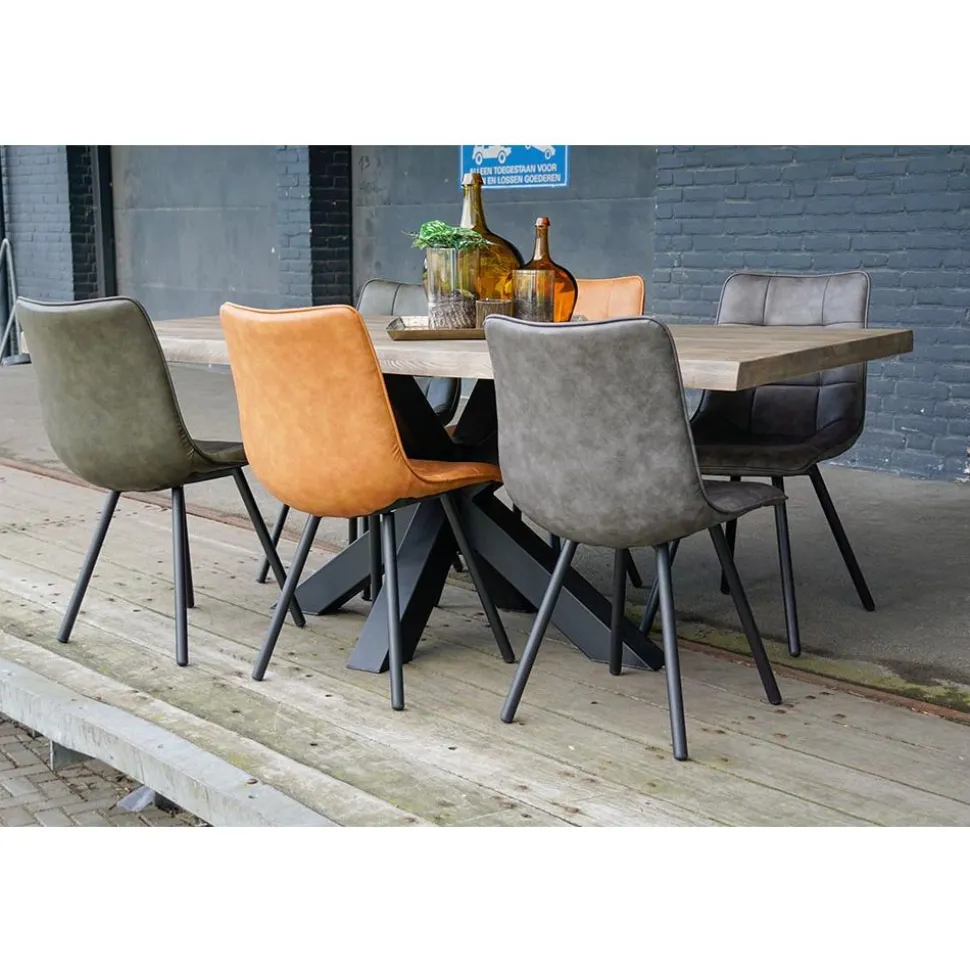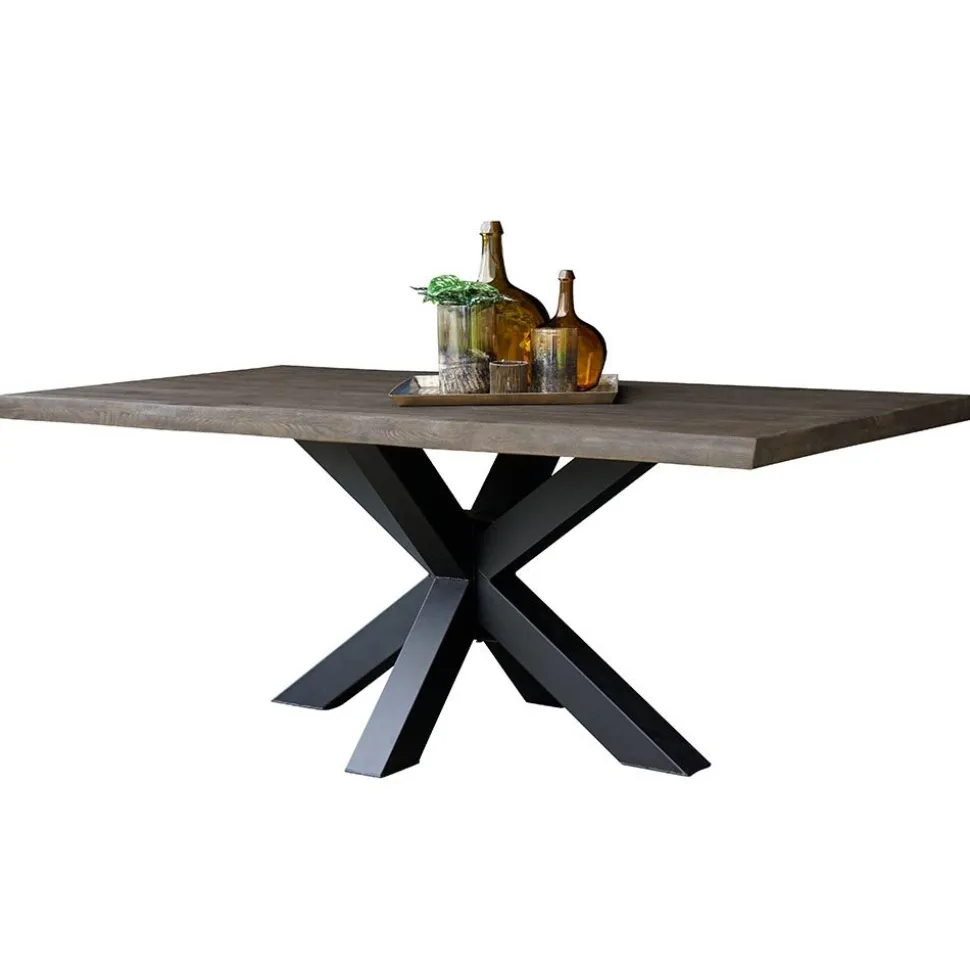 Rough Eetkamertafel met spinpoot Grenen (Old Pine Dark), 200l x 100d 77,5h cm