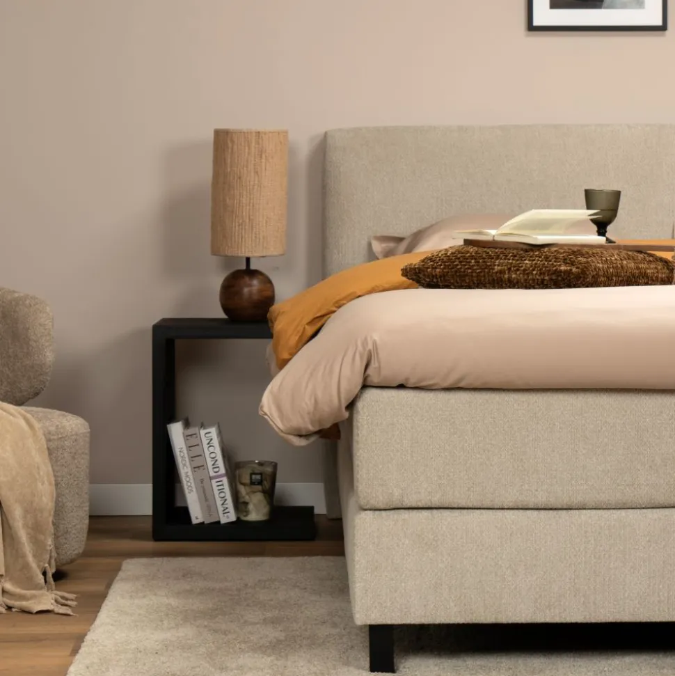 Boxspring: 100b x 200l cm | Hoofdbord: 110b x 115h cm