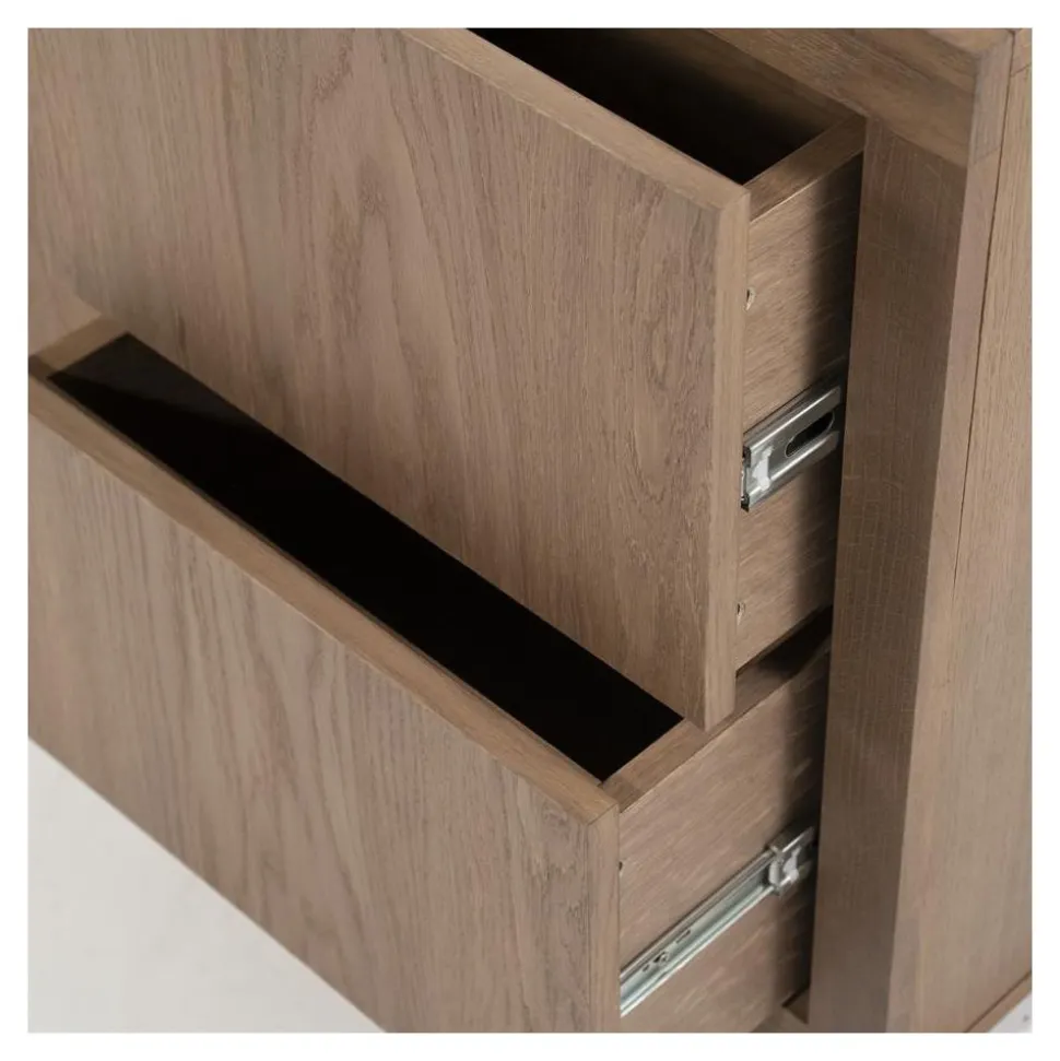 Het Helsinki dressoir valt op door zijn elegante ontwerp en het warme karakter van het eikenhout. De indeling is praktisch en overzichtelijk: de open vakken zijn perfect voor het uitstallen van decoratie of het plaatsen van apparatuur, terwijl de dichte deuren en laden ideaal zijn om al je spullen netjes uit het zicht op te bergen. Zo geniet je van een opgeruimde én stijlvolle leefruimte.