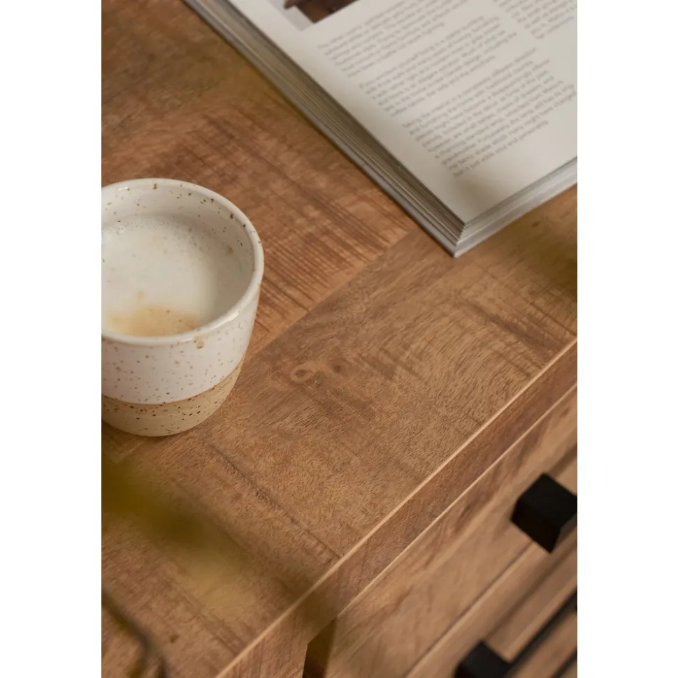 Dit product is onderdeel van woonserie Vibes. De meubelen zijn uitgevoerd in high pressure laminate met een Lamulux Mango kleur, voorzien van een mooie en fraaie natuurlijke houtnerf en een zwart metalen onderstel. Hoewel deze woonserie zeer uitgebreid is kunt u juist door de natuurlijke houtkleur deze meubelen ook combineren met andere houten meubelen en met een houten vloer. Een uitgebreide serie die niet mag ontbreken in een moderne woonkamer.