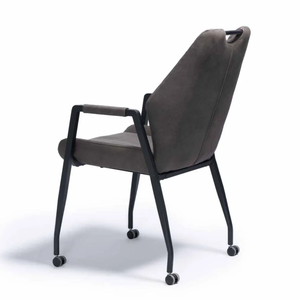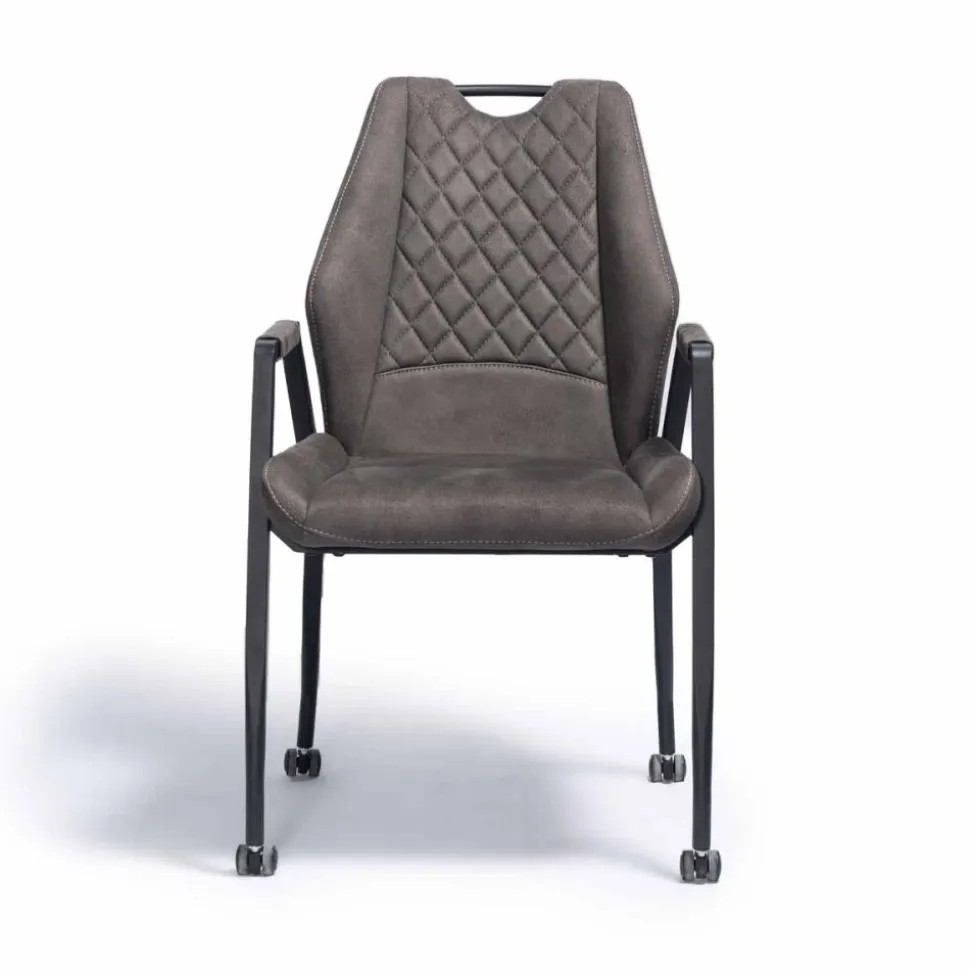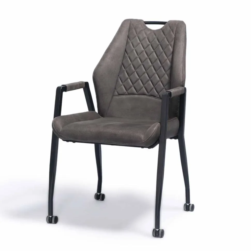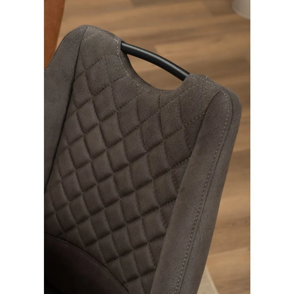 Eetkamerstoel Army is een klassieke stoel met fraai geruit stiksel in de rugleuning, en is voorzien van zwart metalen poten.