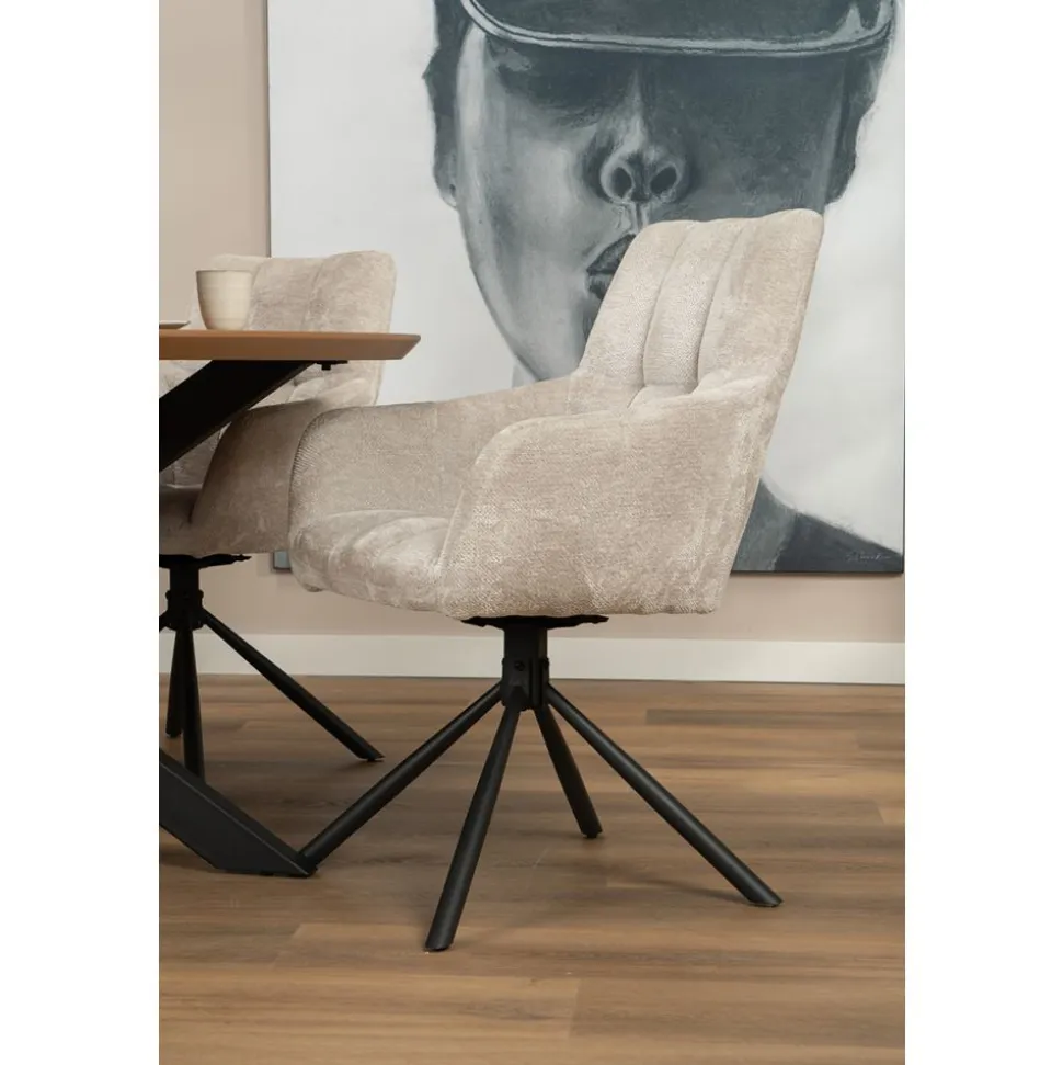 Onze eetkamerstoelDanzel is uitgevoerd in de trendy stof Tenderway. De stoel heeft een stoere kruispoot en een gaaf stiksel in de zit- en rugleuning. De stoel is zowel linksom als rechtsom 90° draaibaar. Stoel Danzel is verkrijgbaar in 3 kleuren: antraciet, blauw en ivoor.
