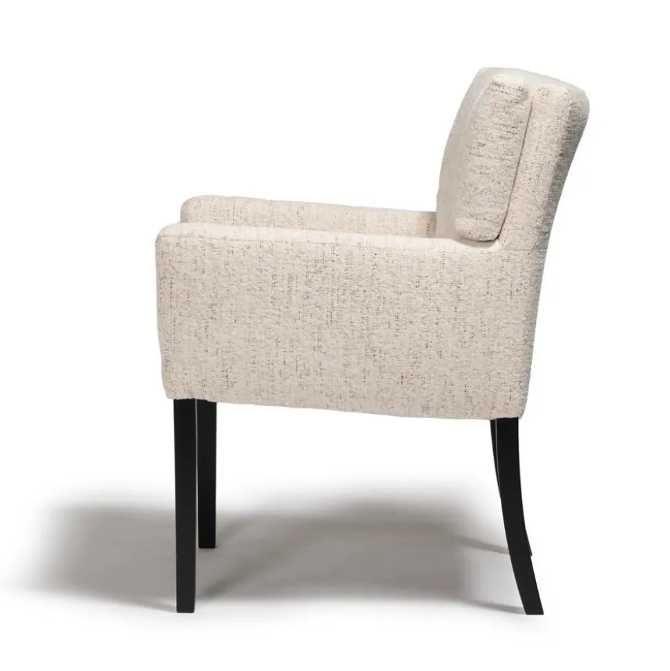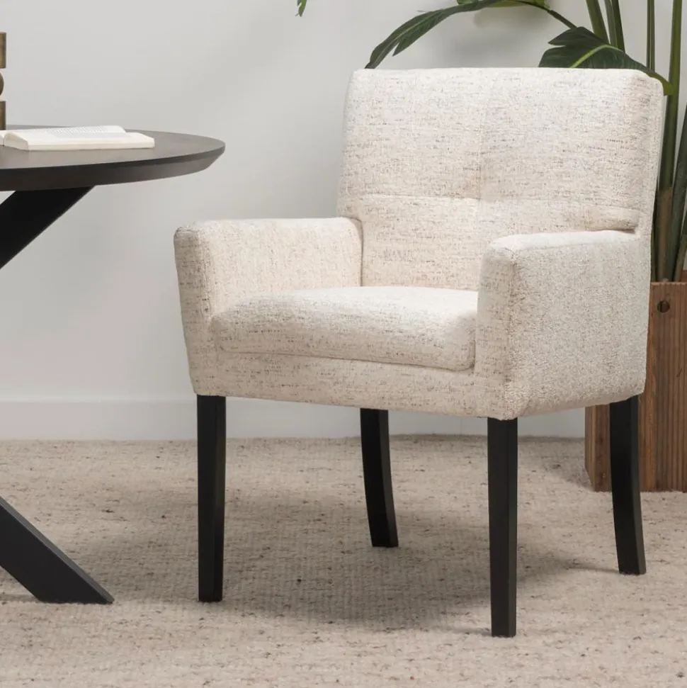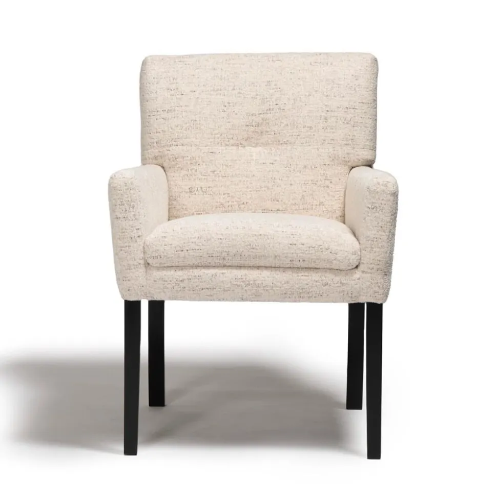 Deze stoel Haven is ontworpen volgens een eenvoudig kuipstoel ontwerp verfraaid met comfortabele kussens. Het wordt gekenmerkt door zachte vierkante stiksels op de rugleuning, wat een mooie afwerking toevoegt.