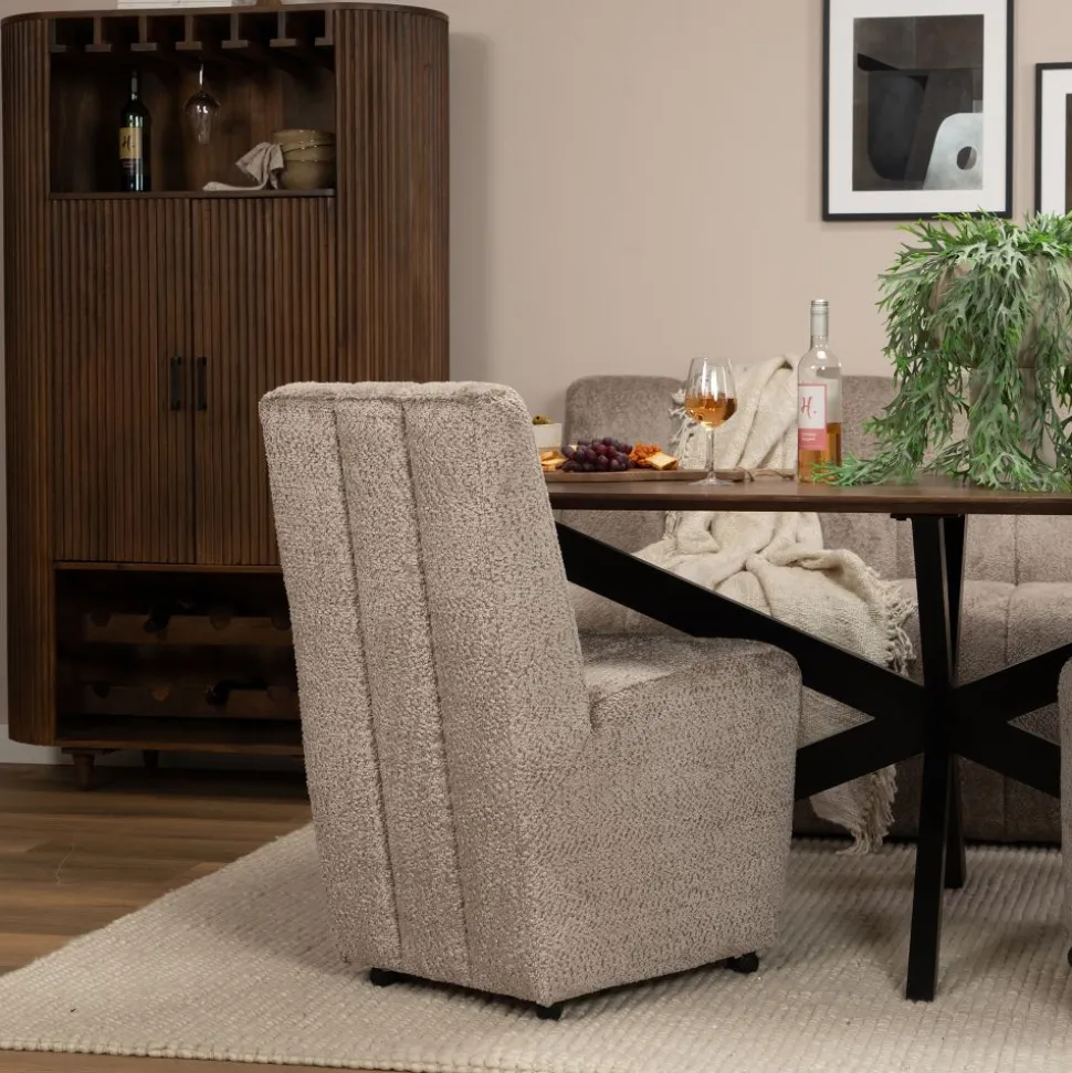 Deze stijlvolle eetkamerstoel Liam combineert comfort en functionaliteit. Dankzij het zachte zitvlak, de stevige rugleuning en de praktische wieltjes is deze stoel perfect om lang na te tafelen. De parketwieltjes zijn vrijwel geschikt voor iedere ondervloer en gemakkelijk onder de tafel te schuiven. Met zijn moderne design en hoogwaardige materialen past hij moeite loos in elke eetkamer.