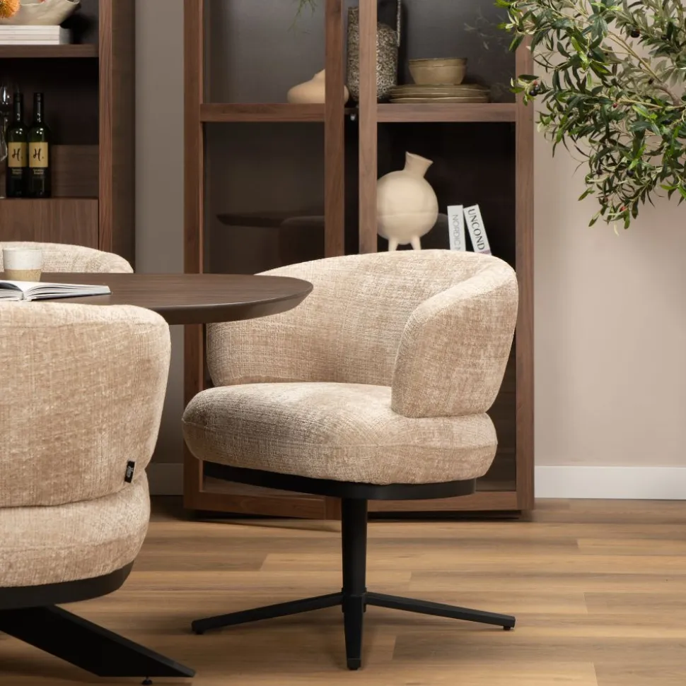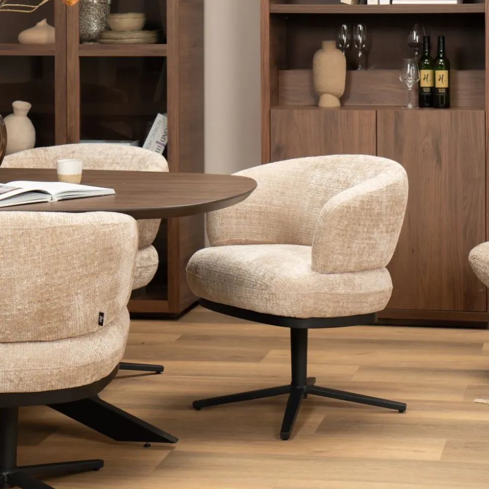 Eetkamerstoel Lola is een moderne 360 graden draaistoel met een elegante, ronde vormgeving en een heerlijk zachte zitting. Deze stijlvolle stoel is perfect voor wie op zoek is naar comfort én design in één. De luxe stoffering en het elegante design maken de Lola stoel perfect voor elk interieur. Combineer hem met de Lola barstoel en maak jouw interieur compleet.