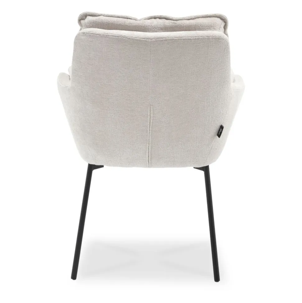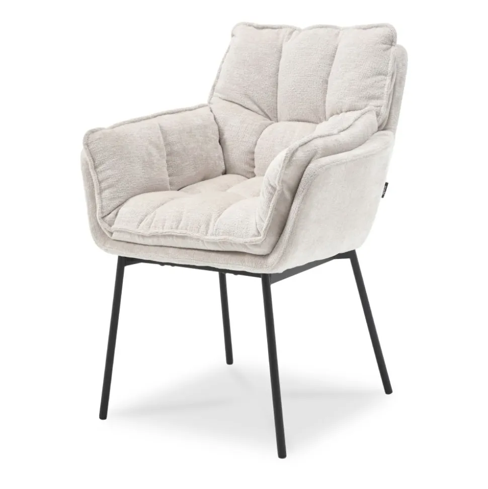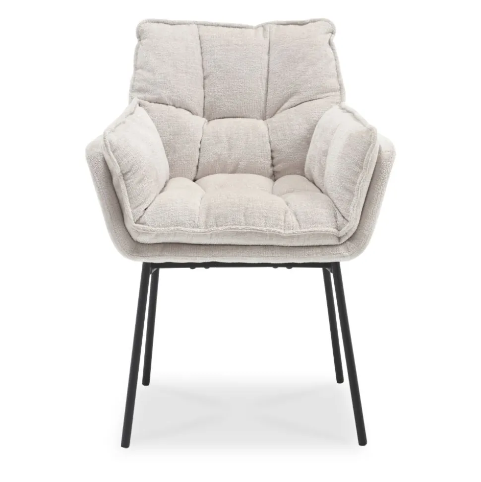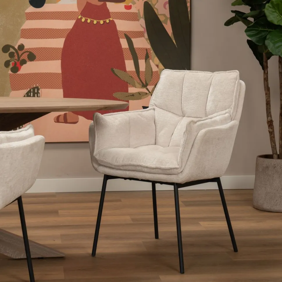 Eetkamerstoel Luca is een trendy stoel bekleed met een fijne stof en heeft mooie, smalle, metalen poten. De kuipstoel met armleuningen heeft écht een fantastisch zitcomfort. Dat je moet je zelf ervaren! Dit maakt het de perfecte stoel voor lange, gezellige avondjes aan je trendy eettafel!