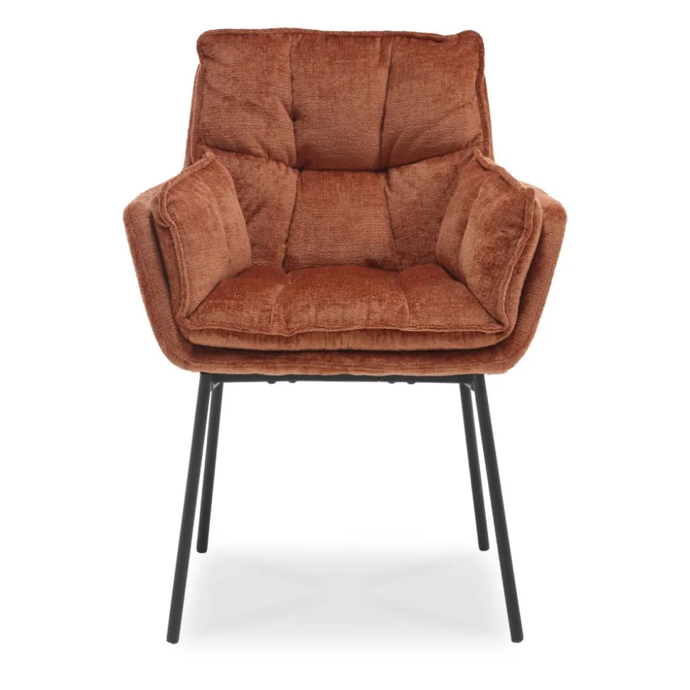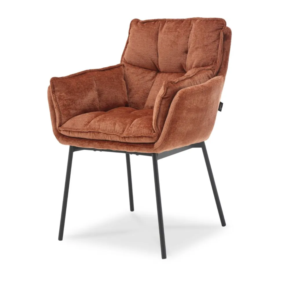 Eetkamerstoel Luca is een trendy stoel bekleed met een fijne stof en heeft mooie, smalle, metalen poten. De kuipstoel met armleuningen heeft écht een fantastisch zitcomfort. Dat je moet je zelf ervaren! Dit maakt het de perfecte stoel voor lange, gezellige avondjes aan je trendy eettafel!