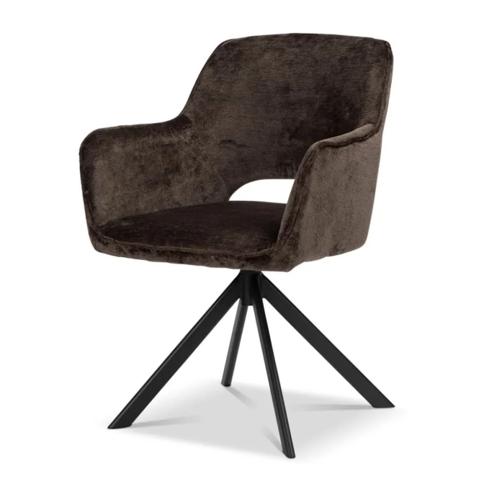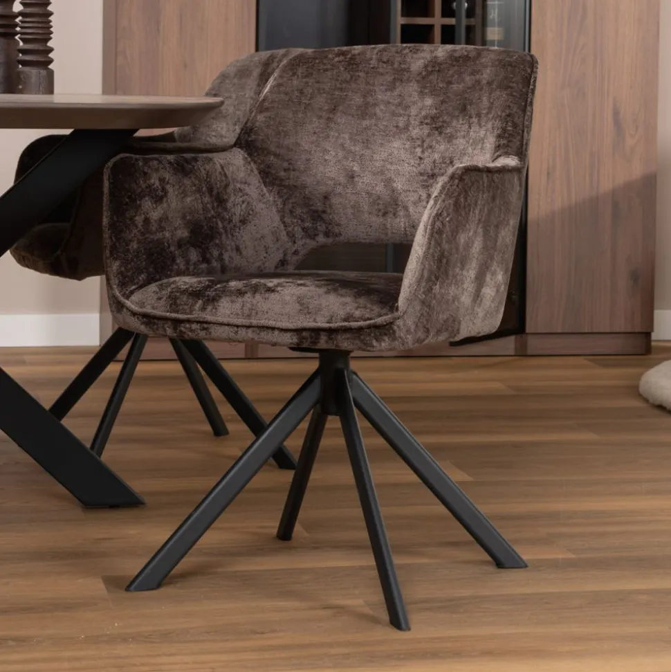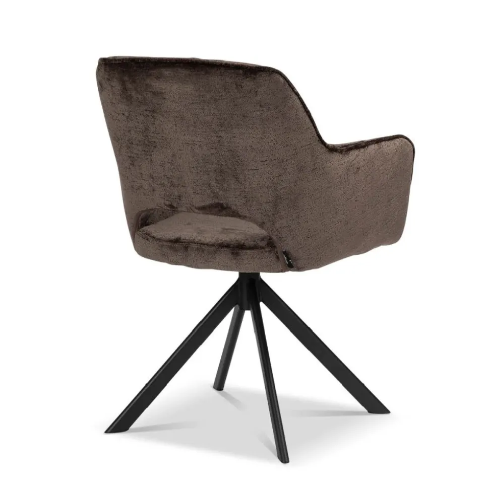 Onze eetkamerstoelLynda is uitgevoerd in een fijne stof. De stoel heeft een gave opening in de rugleuning, wat zorgt voor een ruimtelijk effect. De stoel staat op een stoere, metalen kruispoot die zwart van kleur is. Stoel Lynda is verkrijgbaar in 3 kleuren: bruin, crème en taupe.