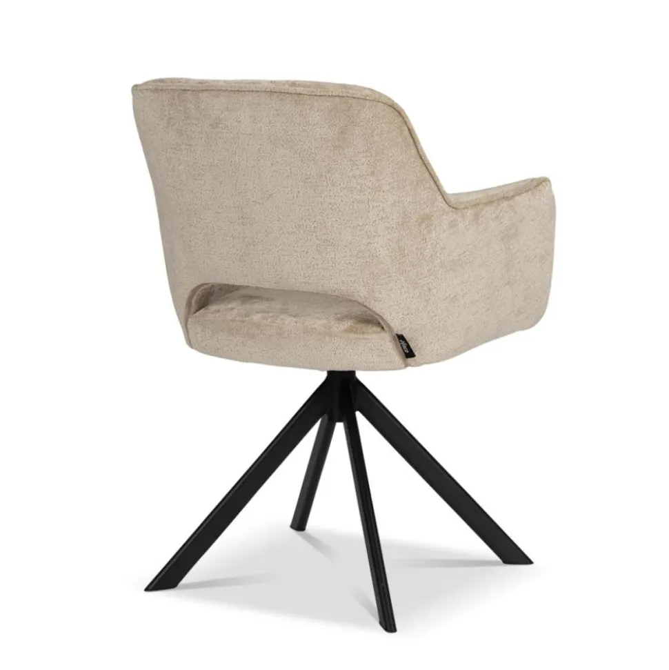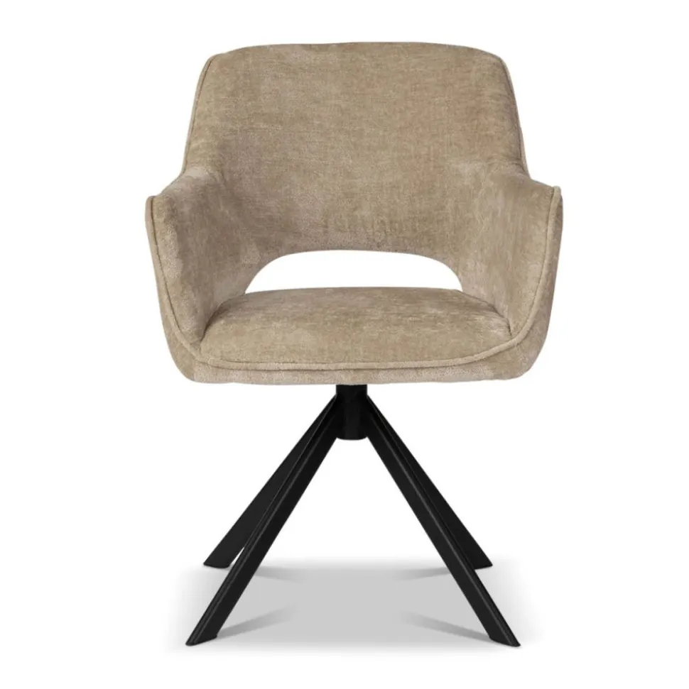 Onze eetkamerstoel Lynda is uitgevoerd in een fijne stof. De stoel heeft een gave opening in de rugleuning, wat zorgt voor een ruimtelijk effect. De stoel staat op een stoere, metalen kruispoot die zwart van kleur is. Stoel Lynda is verkrijgbaar in 3 kleuren: bruin, crème en taupe.