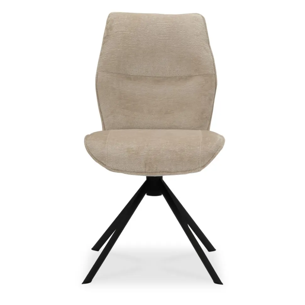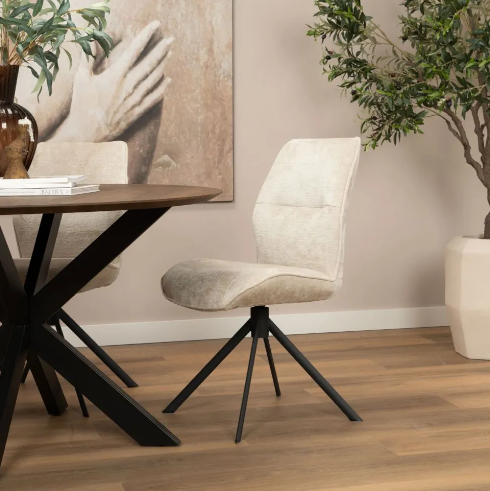 De eetkamerstoel Lynsey biedt comfort in een eigentijds design. Met zachte bekleding, een ergonomische zitting en subtiele stiknaden straalt de stoel stijl uit. Het zwarte metalen onderstel geeft een moderne en stoere touch.