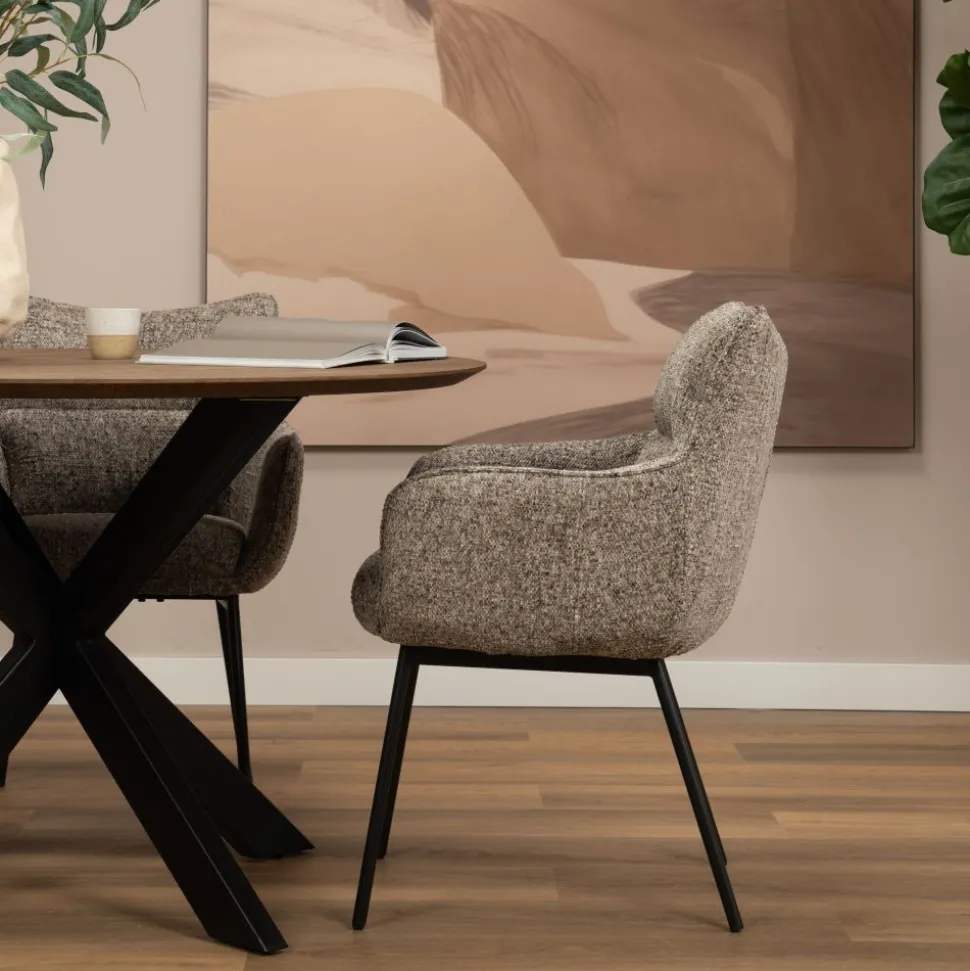 De eetkamerstoel Ricardo past moeiteloos in ieder interieur dankzij zijn zachte vormen en comfortabele zit. De subtiele armleuningen en stijlvolle bekleding zorgen voor een luxe uitstraling én extra zitgemak. Ricardo is beschikbaar in drie trendy kleuren: beige, bruin en brique. Zo vind je altijd de perfecte match voor jouw eethoek.