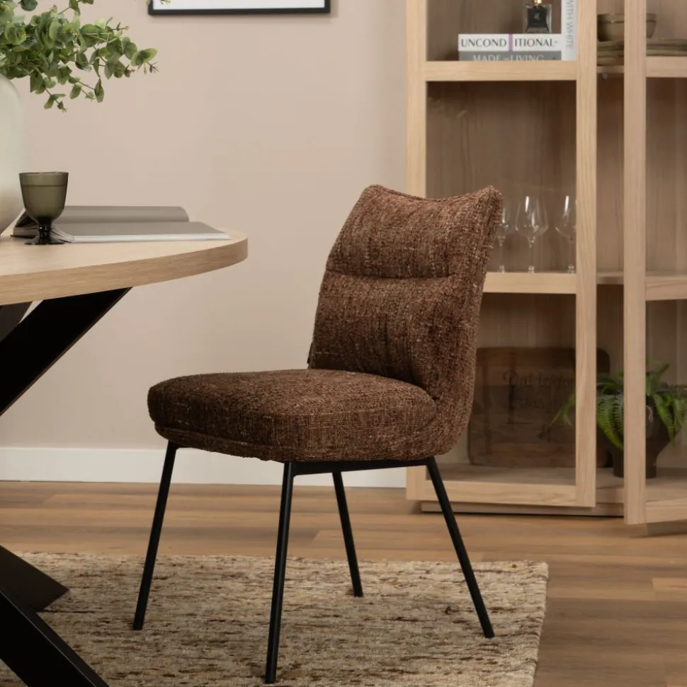 De eetkamerstoel Rico is uitgevoerd in een zachte stof en voorzien van een comfortabele rug- en zitting. Het zwarte metalen onderstel geeft de stoel een moderne uitstraling. Stoel Rico is verkrijgbaar in meerdere kleuren.