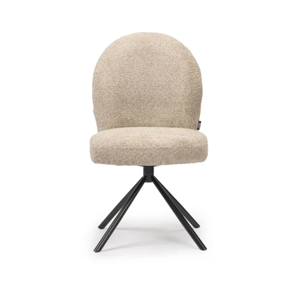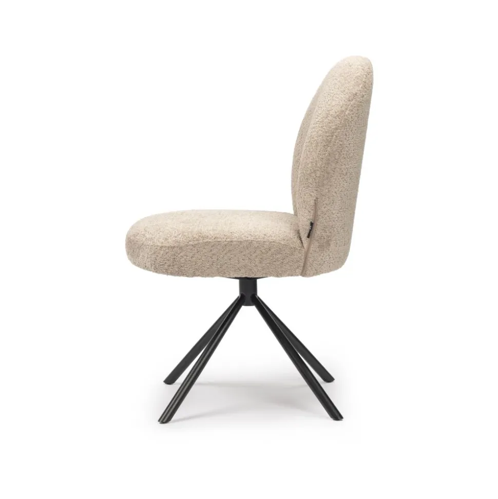 Opzoek naar een draaibare eetkamerstoel? Maak kennis met Sem! Deze stoel maakt deel uit van een collectie stoffen eetkamerstoelen, bekleed met hoogwaardige stof in de trendy kleuren naturel en taupe. Het metalen onderstel van Sem staat garant voor stabiliteit en duurzaamheid, en de ronde vormen voegen een speels element toe aan je interieur. Deze stoel is een waardevolle toevoeging aan je eetkamer!