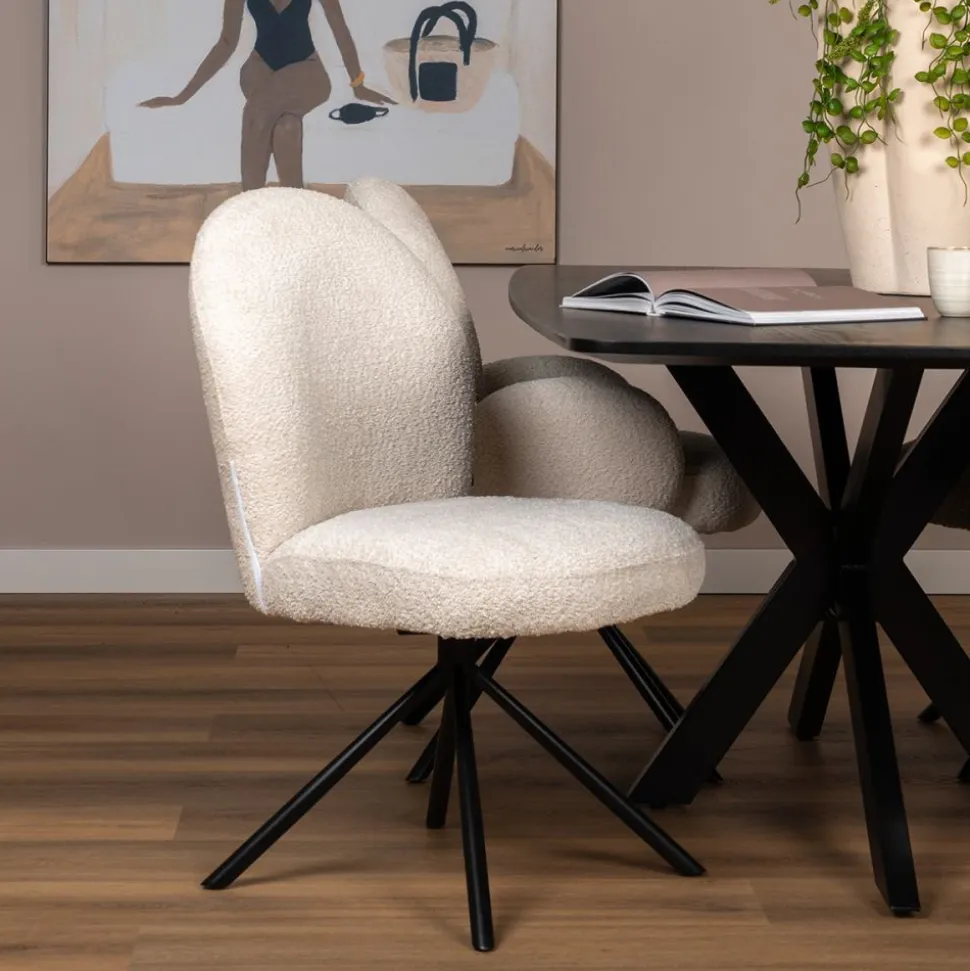 Opzoek naar een draaibare eetkamerstoel? Maak kennis met Sem! Deze stoel maakt deel uit van een collectie stoffen eetkamerstoelen, bekleed met hoogwaardige stof in de trendy kleuren naturel en taupe. Het metalen onderstel van Sem staat garant voor stabiliteit en duurzaamheid, en de ronde vormen voegen een speels element toe aan je interieur. Deze stoel is een waardevolle toevoeging aan je eetkamer!