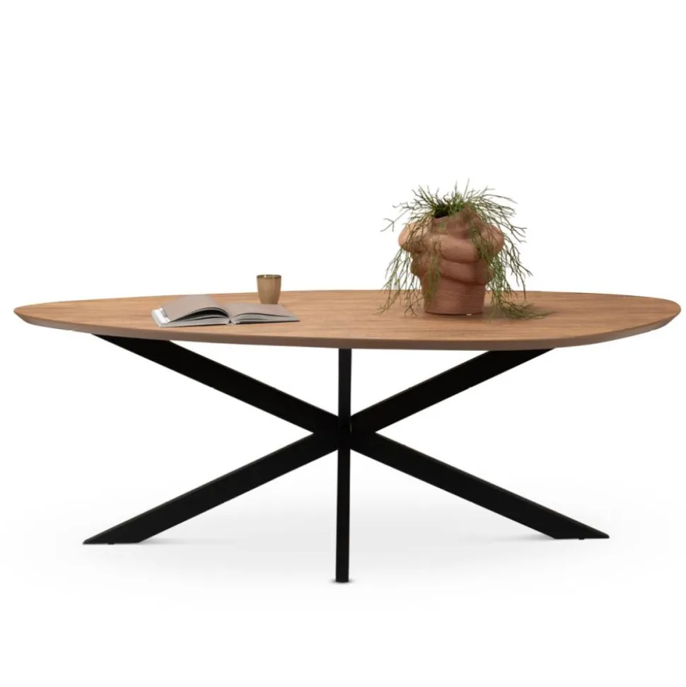 Bradley is een trendy, organische, druppelvormige eettafel gemaakt van melamine. Het tafelblad is verjongd, heeft een stoere mango kleur en rust op een stoere, metalen spinpoot. De eettafel is verkrijgbaar in twee maten en meerdere kleuren.