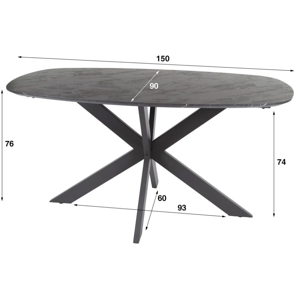 Eetkamertafel 150 deens ovaal / 3D zwart bruin