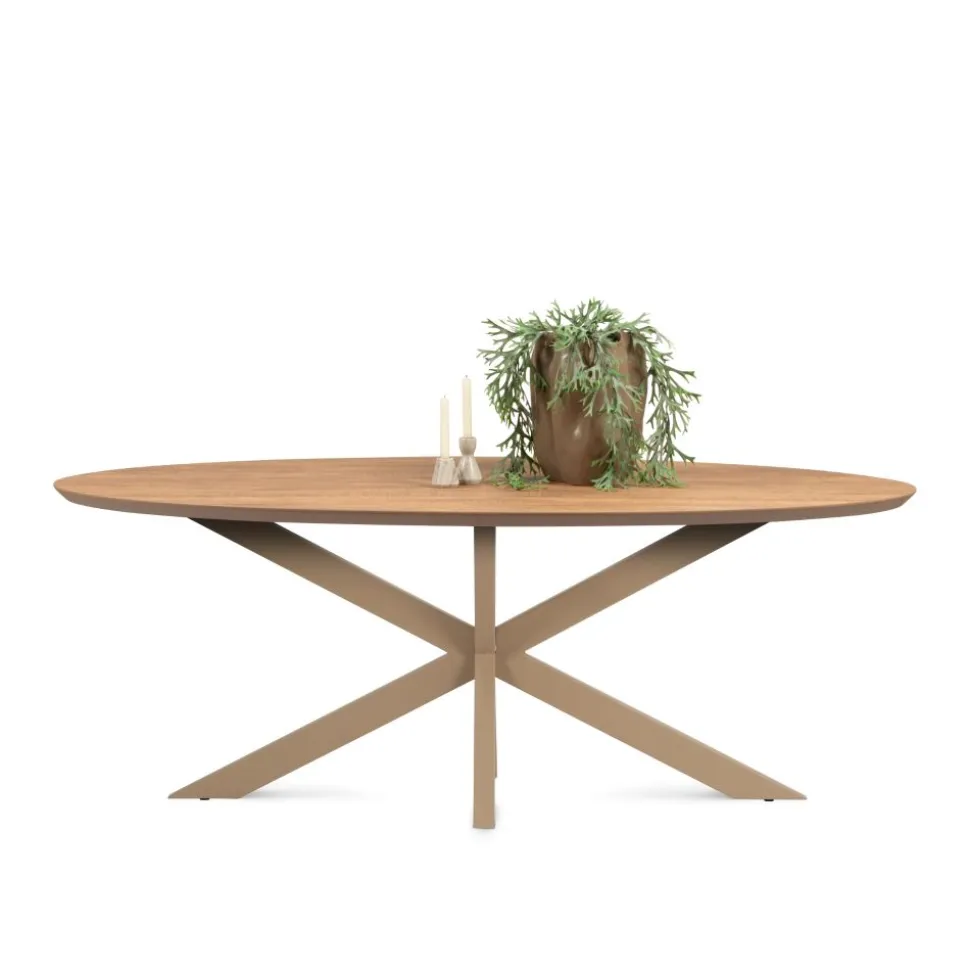 George is een trendy, ovale eettafel gemaakt van melamine. Het tafelblad is verjongd, heeft een gave, mango kleur en rust op een stoere, metalen spinpoot. De eettafel is verkrijgbaar in vijf maten en meerdere kleuren.