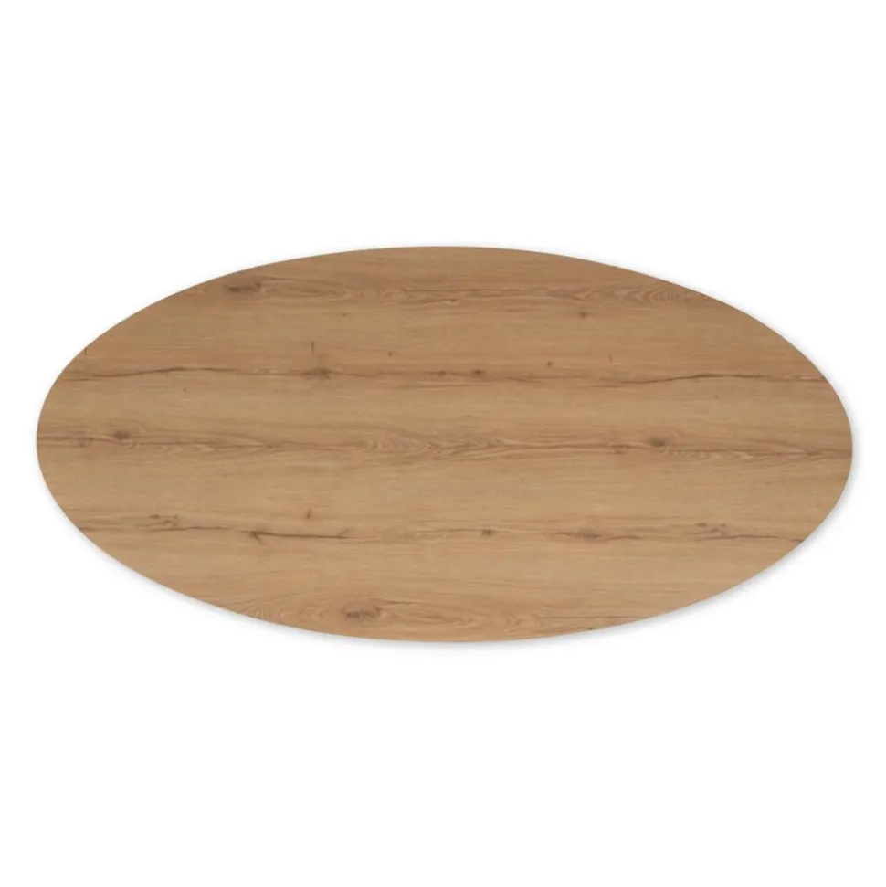 George is een trendy, ovale eettafel gemaakt van melamine. Het tafelblad is verjongd, heeft een gave, naturel eiken kleur en rust op een stoere, metalen spinpoot. De eettafel is verkrijgbaar in vijf maten en meerdere kleuren.