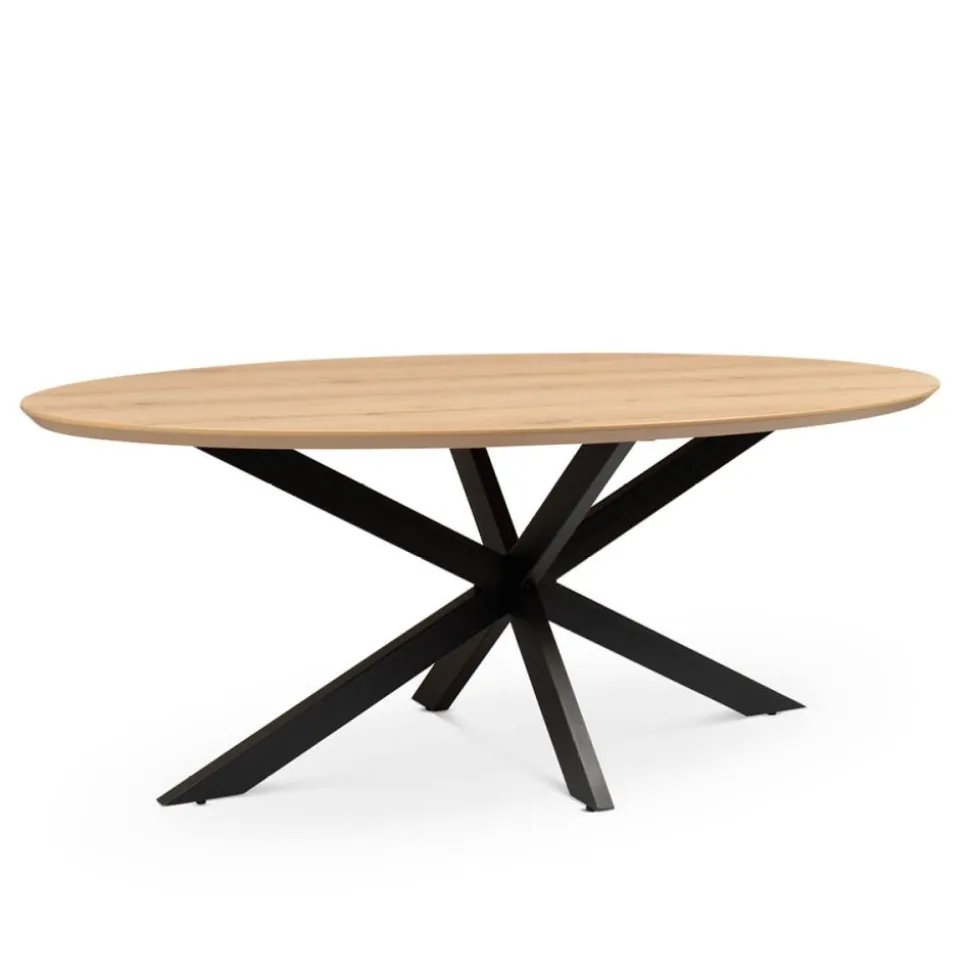 180b x 90d x 76h cm | Tafelblad: Naturel Eiken| Poot: Spinpoot