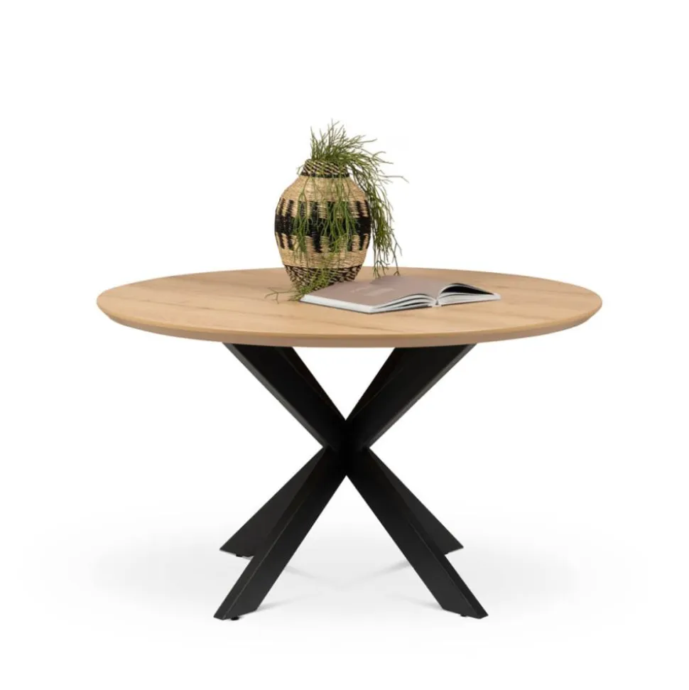Dit is onze gave, ronde eettafel Wilson! De rand van de tafel is verjongd en het tafelblad is uitgevoerd in melamine in een mooie, blank eiken kleur. De tafel is gemakkelijk te combineren met de rest van je meubels uit jouw moderne woonkamer! De eettafel is verkrijgbaar in vier afmetingen en meerdere kleuren.