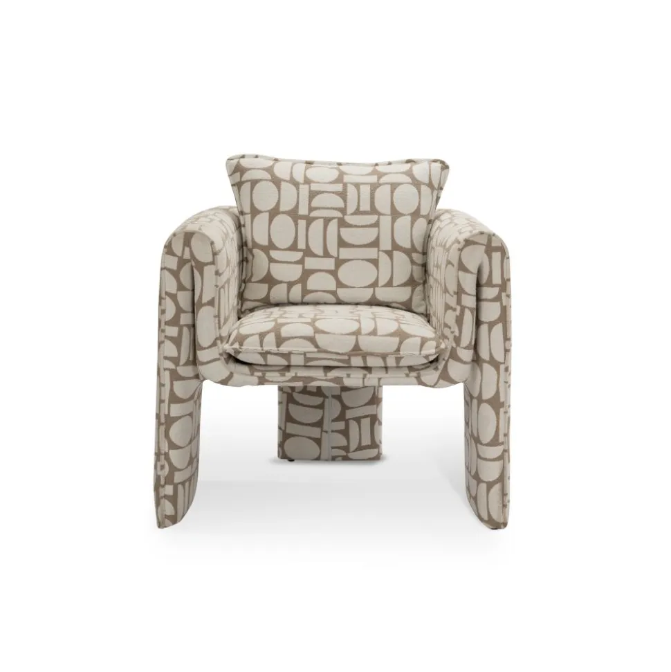 Fauteuil Romee is een echte eyecatcher dankzij het unieke grafische patroon in zachte, neutrale tinten. De afgeronde vormen en de royale zit en rugkussen zorgen voor een heerlijk comfortabele zit. Perfect om te ontspannen met een goed boek of een kop koffie.
