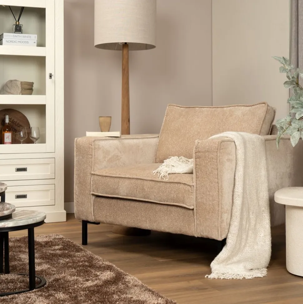 Fauteuil Vogue is de ideale fauteuil voor jouw moderne woonkamer! De zit- en rugkussens zijn los gestoffeerd en er zit klittenband aan de onderkant zodat de kussens niet verschuiven. De fauteuil staat op metalen, zwarte pootjes en is eenvoudig te combineren met de rest van je interieur.