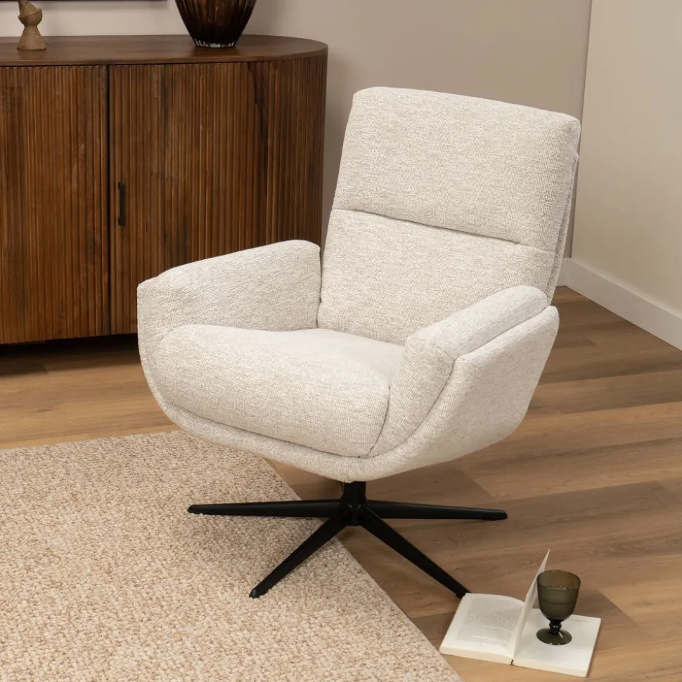 Relaxfauteuil Wexford is een eigentijdse relaxfauteuil met een strak design op een stevige draaipoot. Bekleed met een zachte, hippe stof met grafisch patroon is deze stoel een echte eyecatcher in jouw interieur. Dankzij de comfortabele zit en het uitnodigende model wordt het jouw favoriete plek om te ontspannen met een goed boek, stijlvol zitten was nog nooit zo fijn.