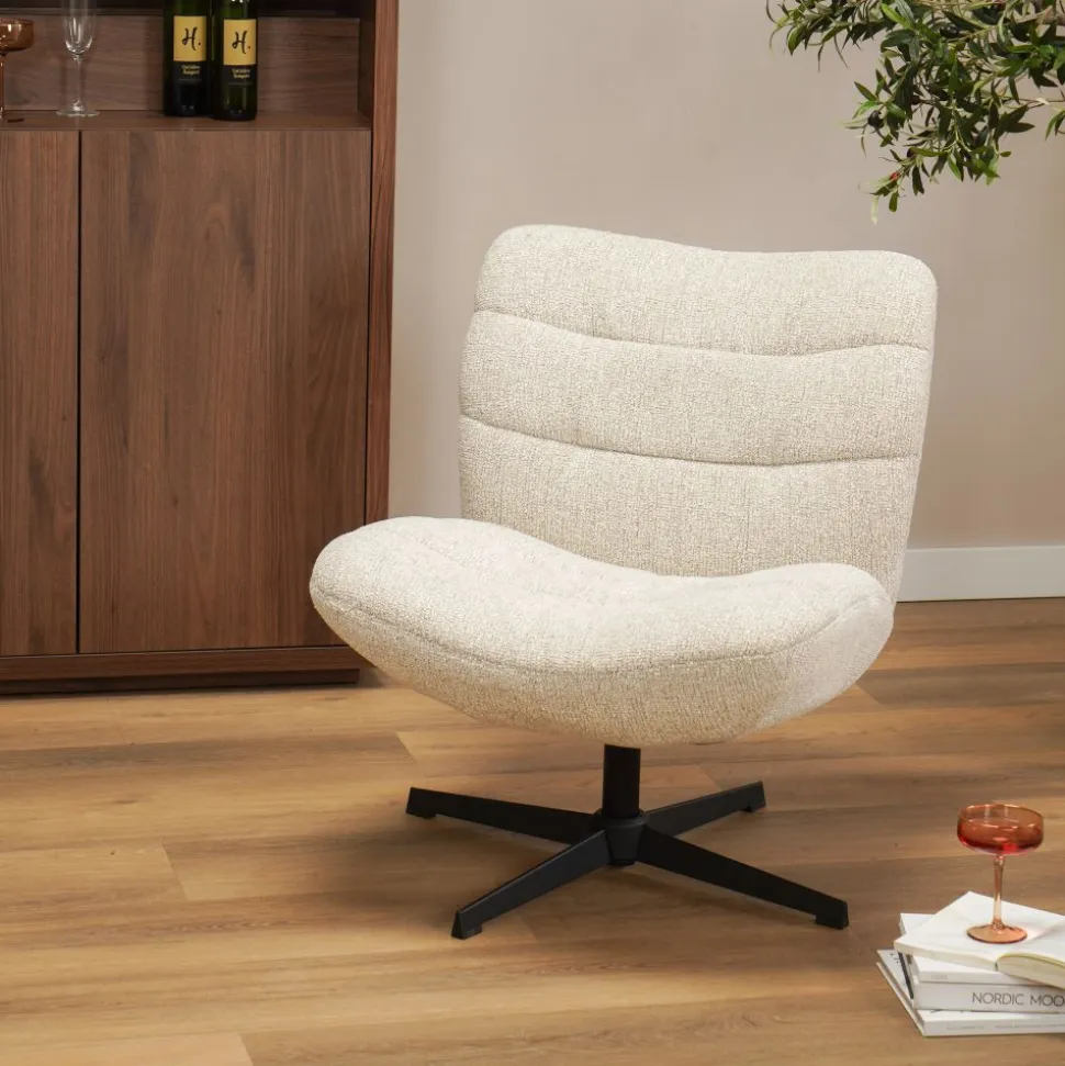 Draaifauteuil Yil is een comfortabele fauteuil met een moderne en uitnodigende uitstraling. De fauteuil is verkrijgbaar in de kleuren beige en oker, waardoor hij makkelijk te combineren is met verschillende woonstijlen. De stalen draaipoot geeft de fauteuil een stoer accent en maakt hem praktisch in gebruik, zodat je eenvoudig kunt meedraaien in de ruimte. Draaifauteuil Yil staat mooi als losse stoel in de woonkamer, naast de bank of in een leeshoek. Combineer hem met een bijzettafel of vloerkleed om je zithoek compleet te maken.