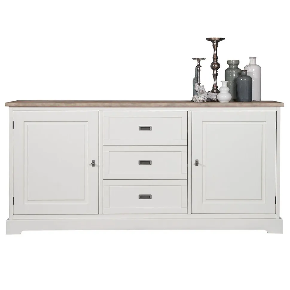 Dit artikel is onderdeel van woonserie Florence. De serie is vervaardigd van massief old pinewood, wit geverfd en voorzien van een bruin bovenblad. De handgrepen zijn netjes ingefreesd en de deurtjes van deze woonkamer meubelen zijn voorzien van een slot met sleutel. Deze serie past in een landelijk of modern interieur.