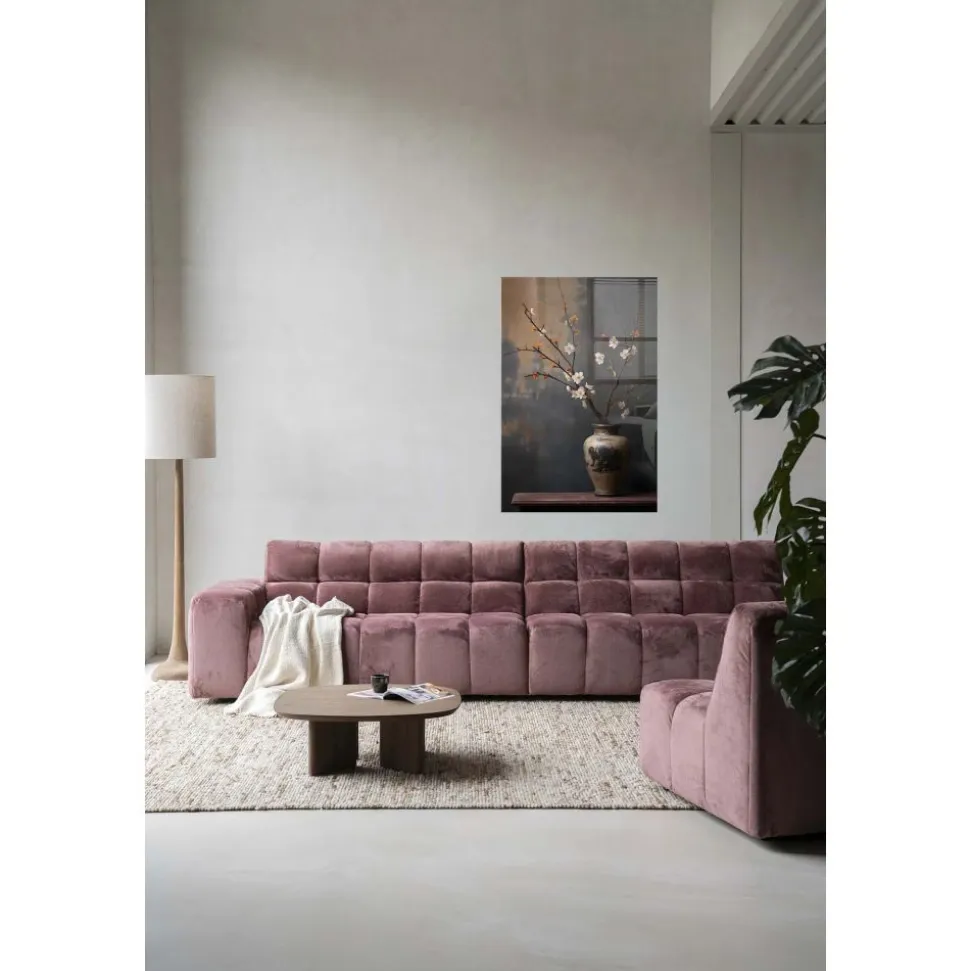 Dit schilderij toont een verfijnde compositie van bloesemtakken in een klassieke vaas. De combinatie van warme aardetinten, donkere achtergrond en zachte bloesems creëert een harmonieus en sfeervol geheel. Een stijlvol kunstwerk dat rust en elegantie brengt in elke woonruimte. Uitgevoerd als glazen schilderij, wat zorgt voor een strakke uitstraling.