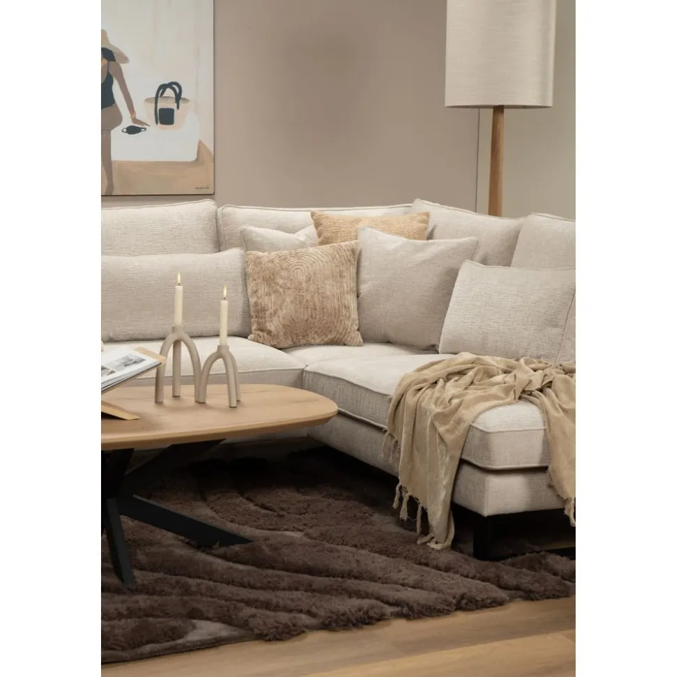 Lars is een stoere hoekbank met vaste zitkussens en losse rug- en lendekussens. De bank is uitgevoerd in een luxe stof en voorzien van een stoer metalen onderstel. De bank heeft een heerlijke, comfortabele zitting en nodigt uit om lekker op te ontspannen.