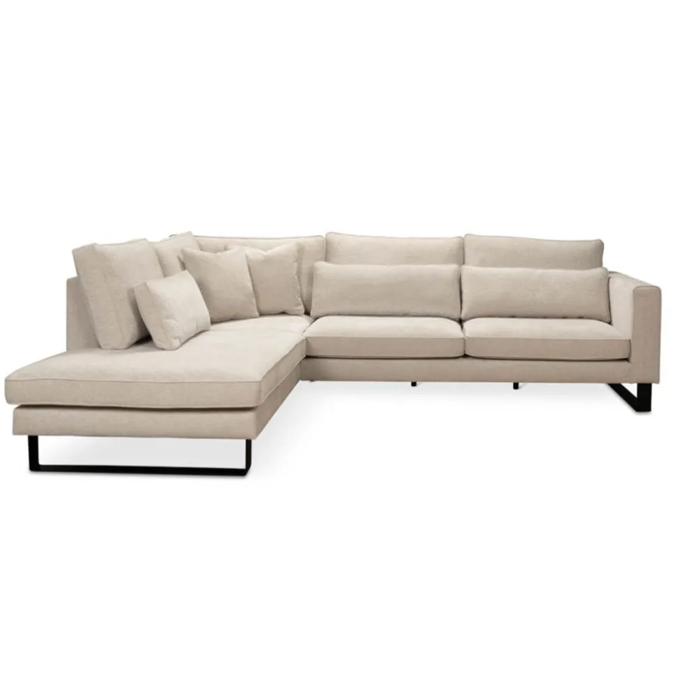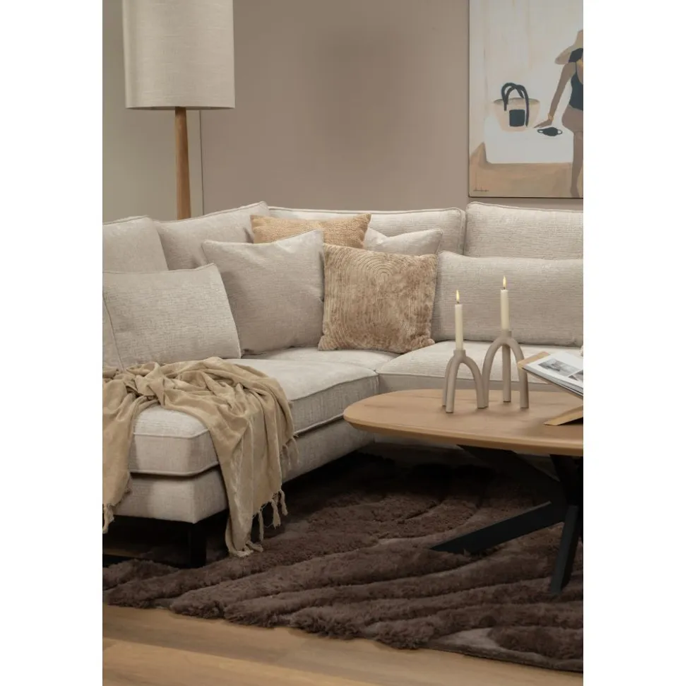Lars is een stoere hoekbank met vaste zitkussens en losse rug- en lendekussens. De bank is uitgevoerd in een luxe stof en voorzien van een stoer metalen onderstel. De bank heeft een heerlijke, comfortabele zitting en nodigt uit om lekker op te ontspannen.