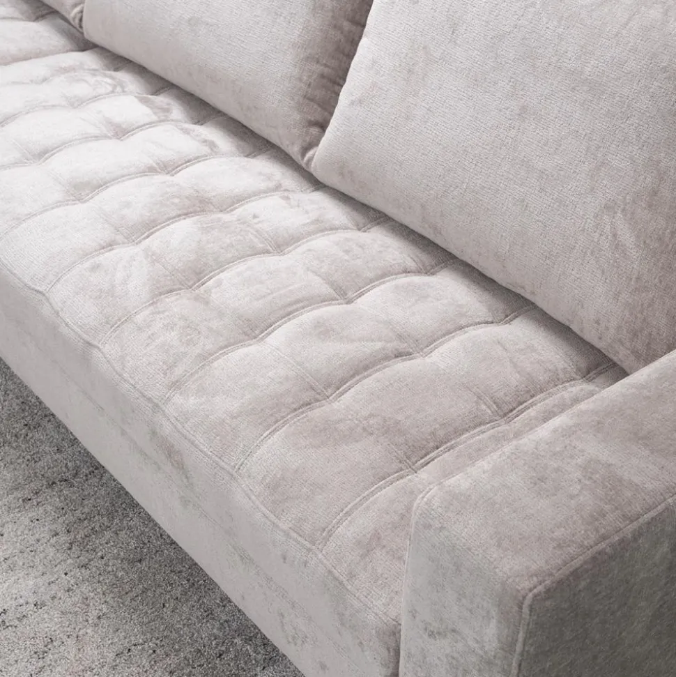 Bank Lise is een moderne bank met losse rugkussens en vaste zitkussens. De vaste zitkussens zijn carré gestikt. Tevens zorgt de microvezelstof voor een vuil- en waterafstotend effect waardoor eventuele vlekken gemakkelijk te reinigen zijn. De pootjes zijn uitgevoerd in zwart metaal.