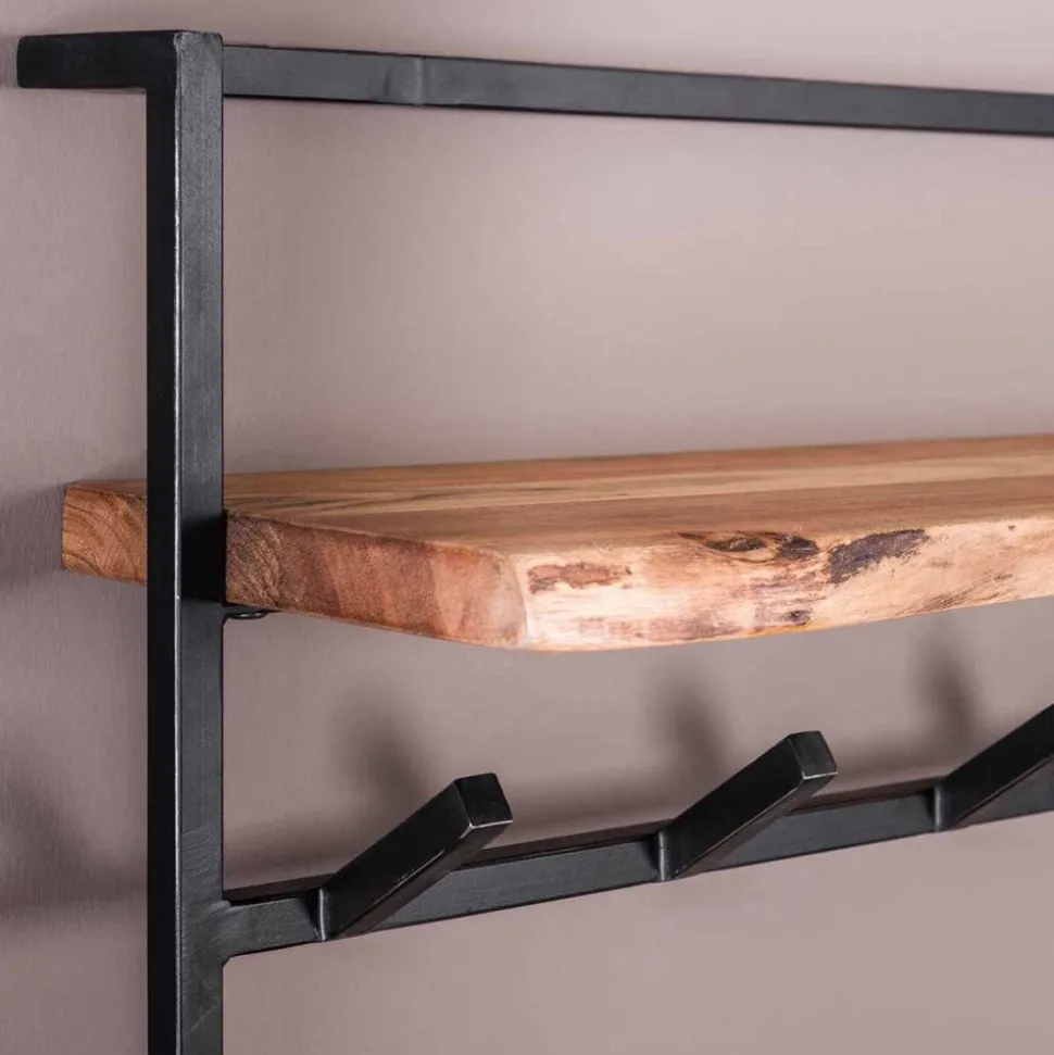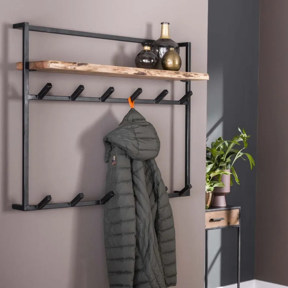 Kapstok air solid 12 haken hoedenplank / Massief acacia naturel