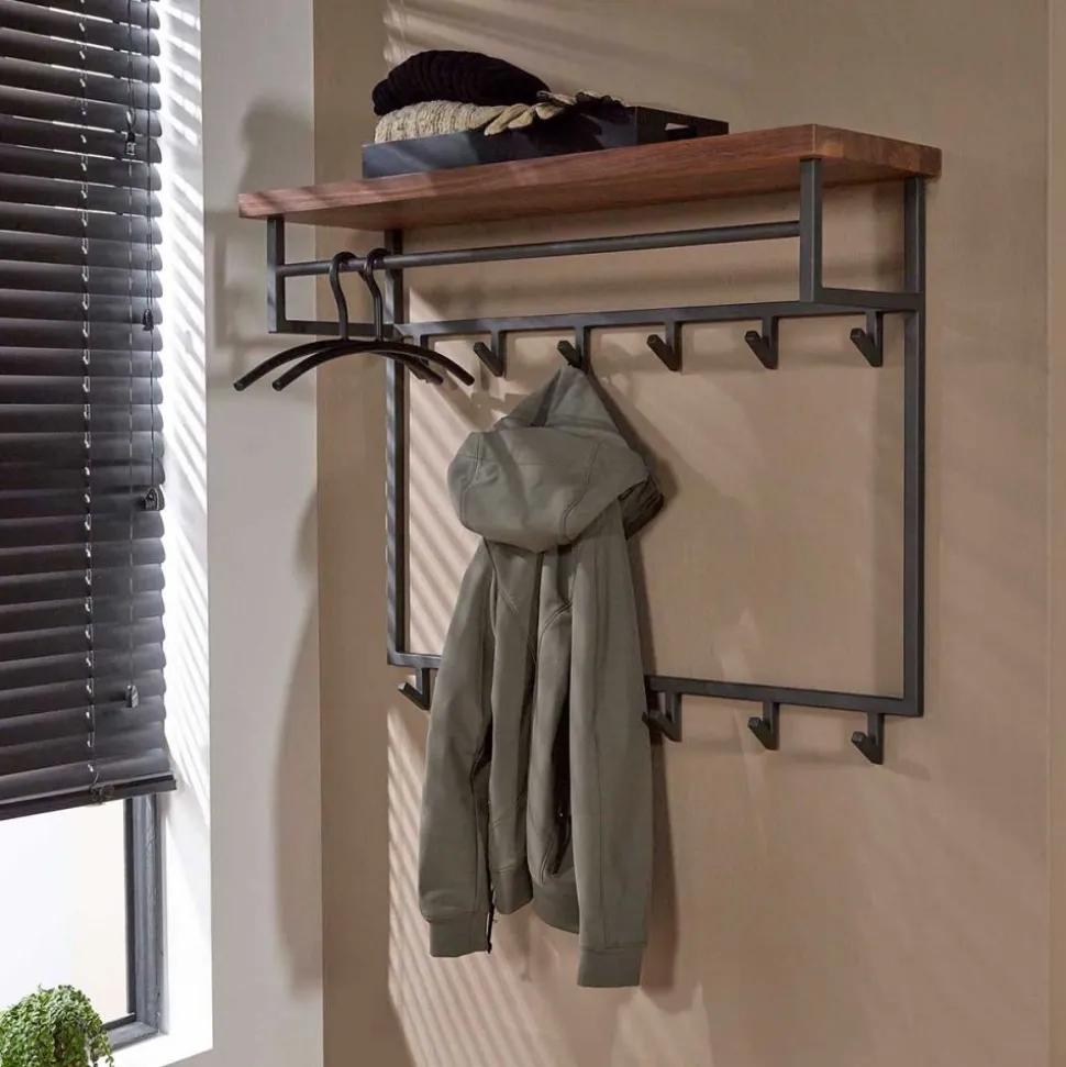 Kapstok Daytona 12 haken hoedenplank / Massief Saja natural