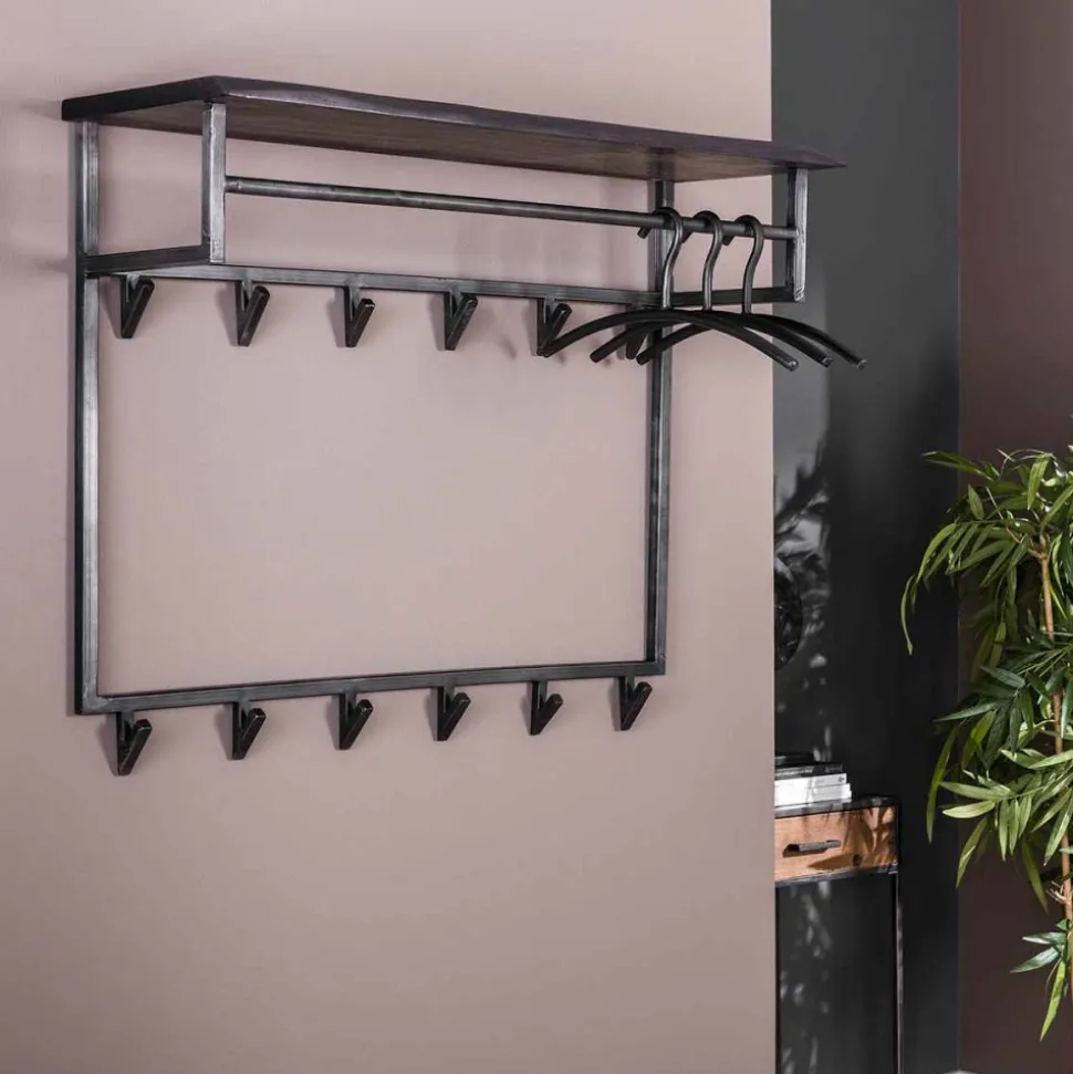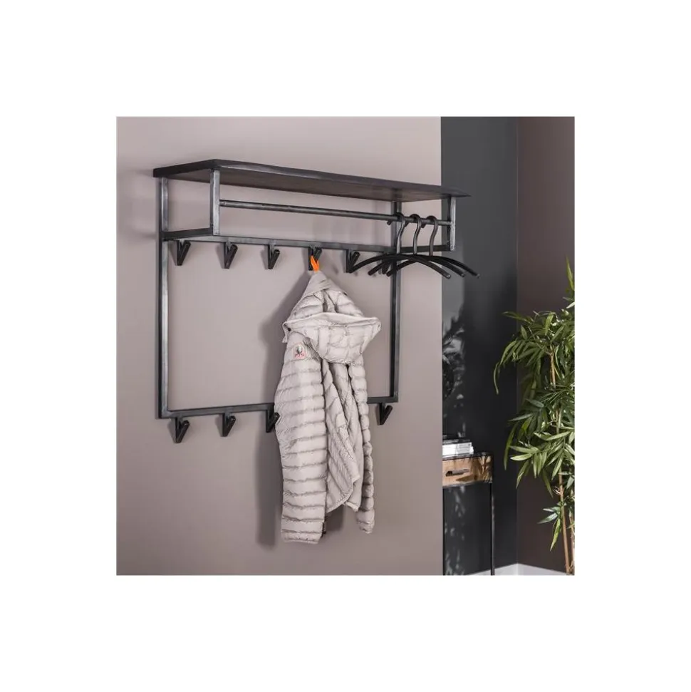 Kapstok yucon hoog 12 haken hoedenplank / Massief acacia zwart