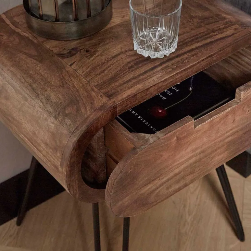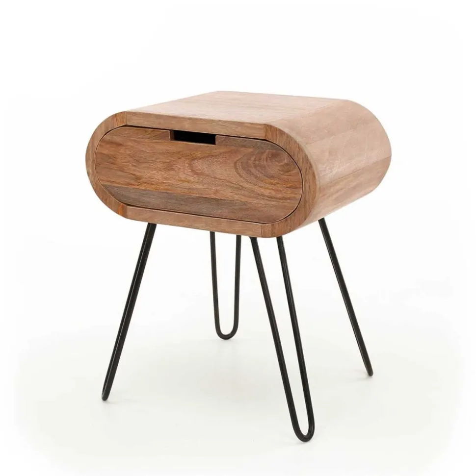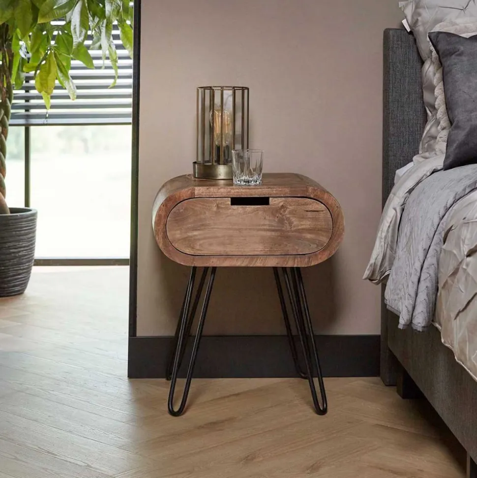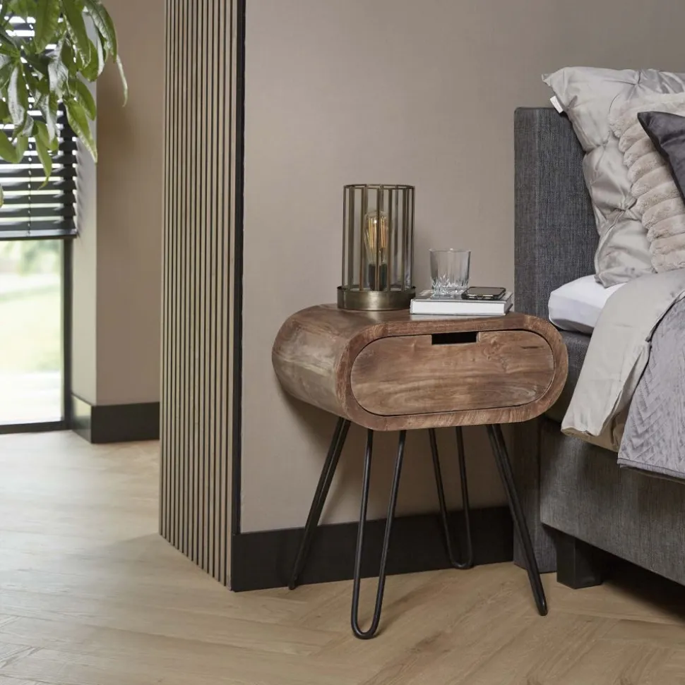 Nachtkastje barrel 1L / Massief mango zandkleur