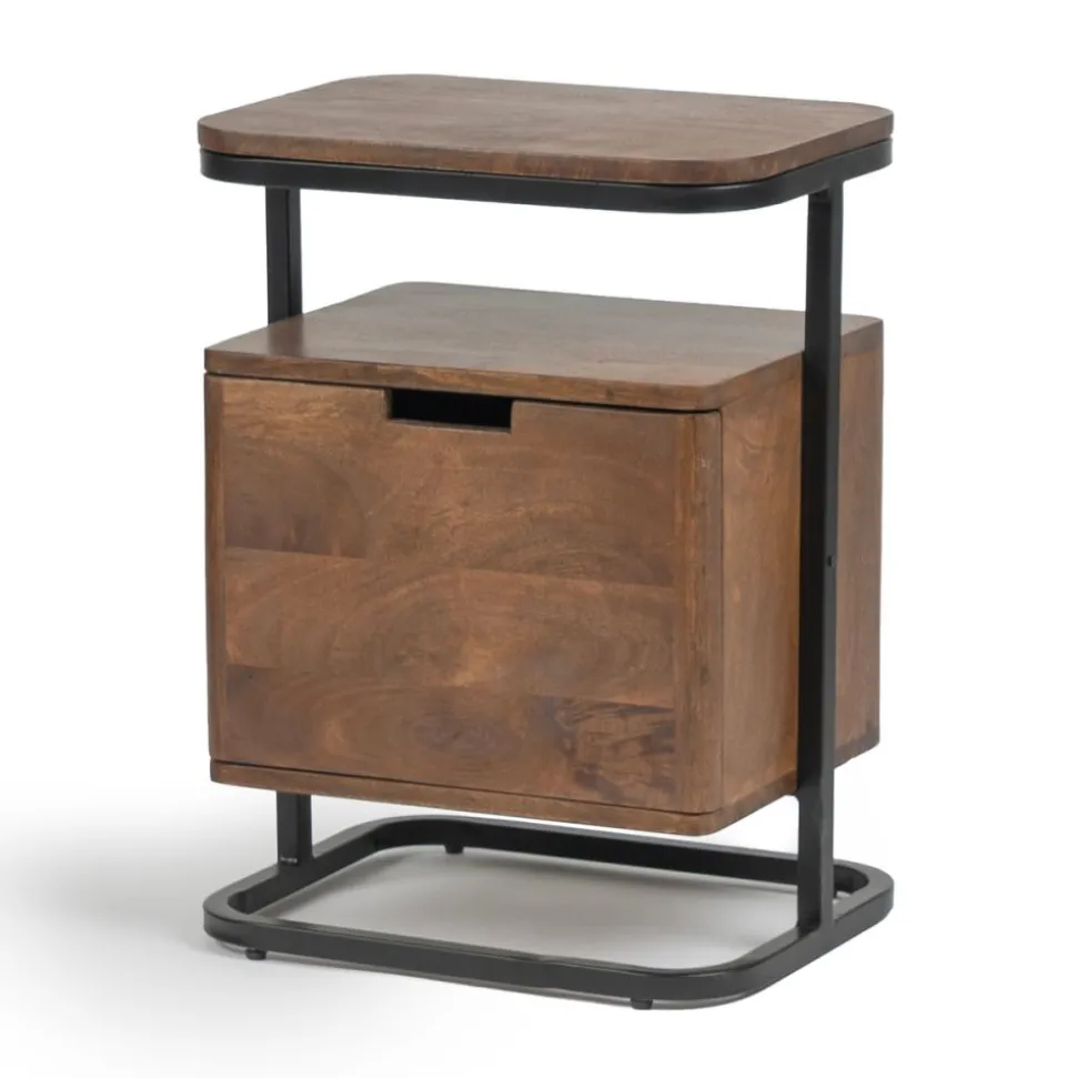 Dit gave nachtkastje Jaimy met 1 diepe lade is prachtig afgewerkt en lekker praktisch naast je nieuwe boxspring. De lade heeft een inkeping, waardoor je hem makkelijk open en dicht kunt doen. Het nachtkastje heeft een stijlvol ontwerp en staat op een stevig, metalen onderstel. Verkrijgbaar in twee kleuren: bruin en zwart.