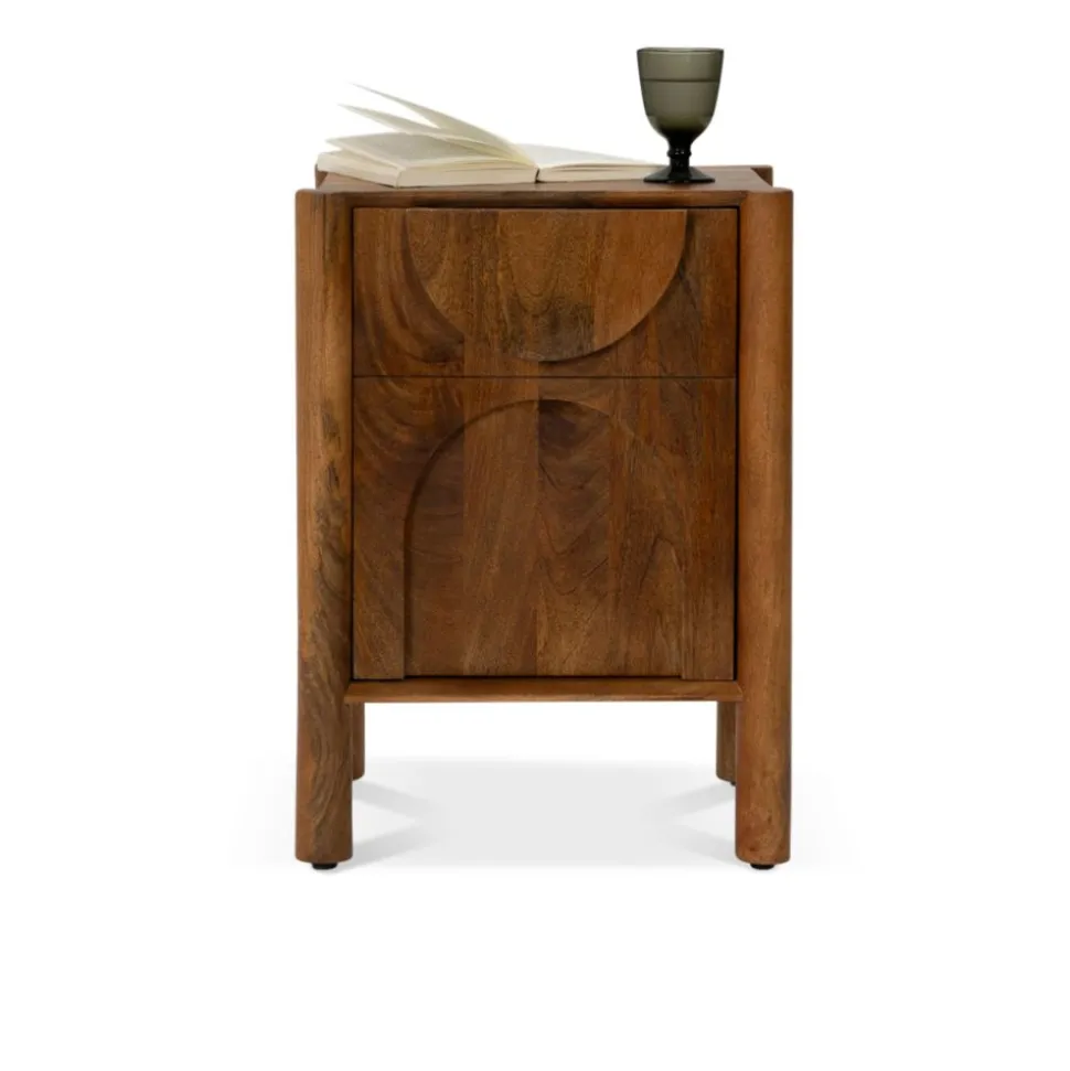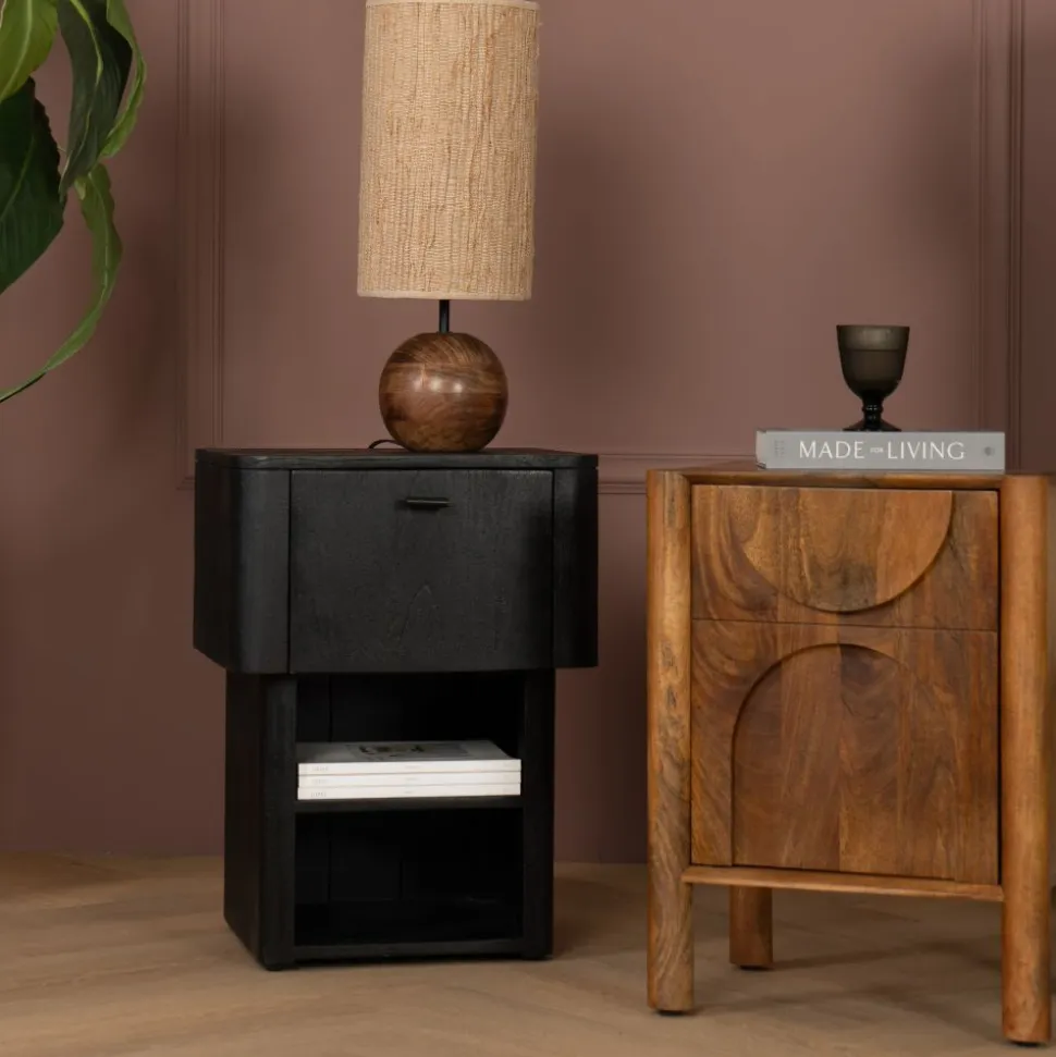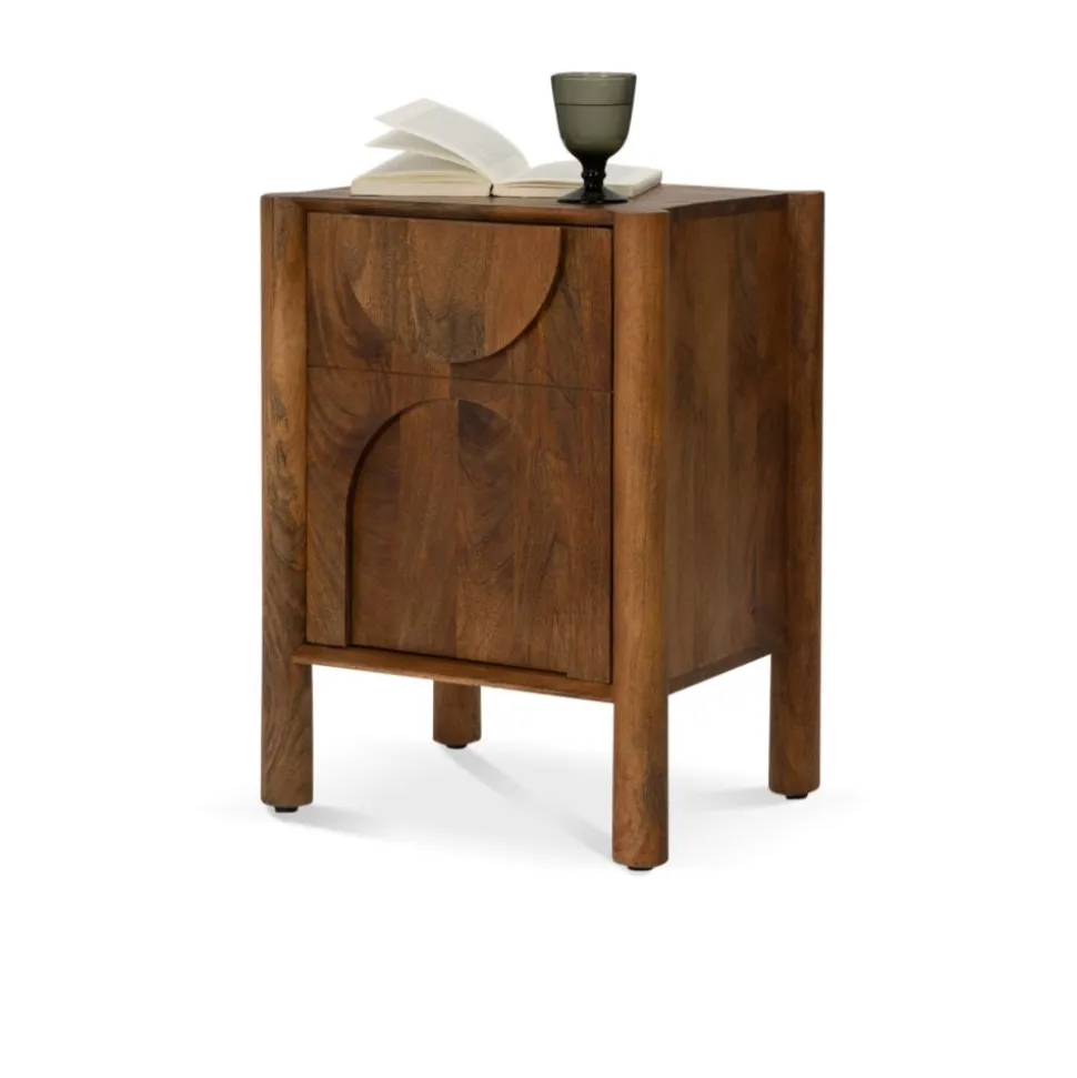 Op zoek naar een nachtkastje met karakter? Nachtkastje Murcia is een echte eyecatcher in jouw slaapkamer! Gemaakt van massief mango hout straalt dit kastje warmte en sfeer uit. Het robuuste hout in combinatie met het unieke design, met afgeronde vormen en speelse, ronde poten geeft Murcia een moderne en stoere uitstraling.