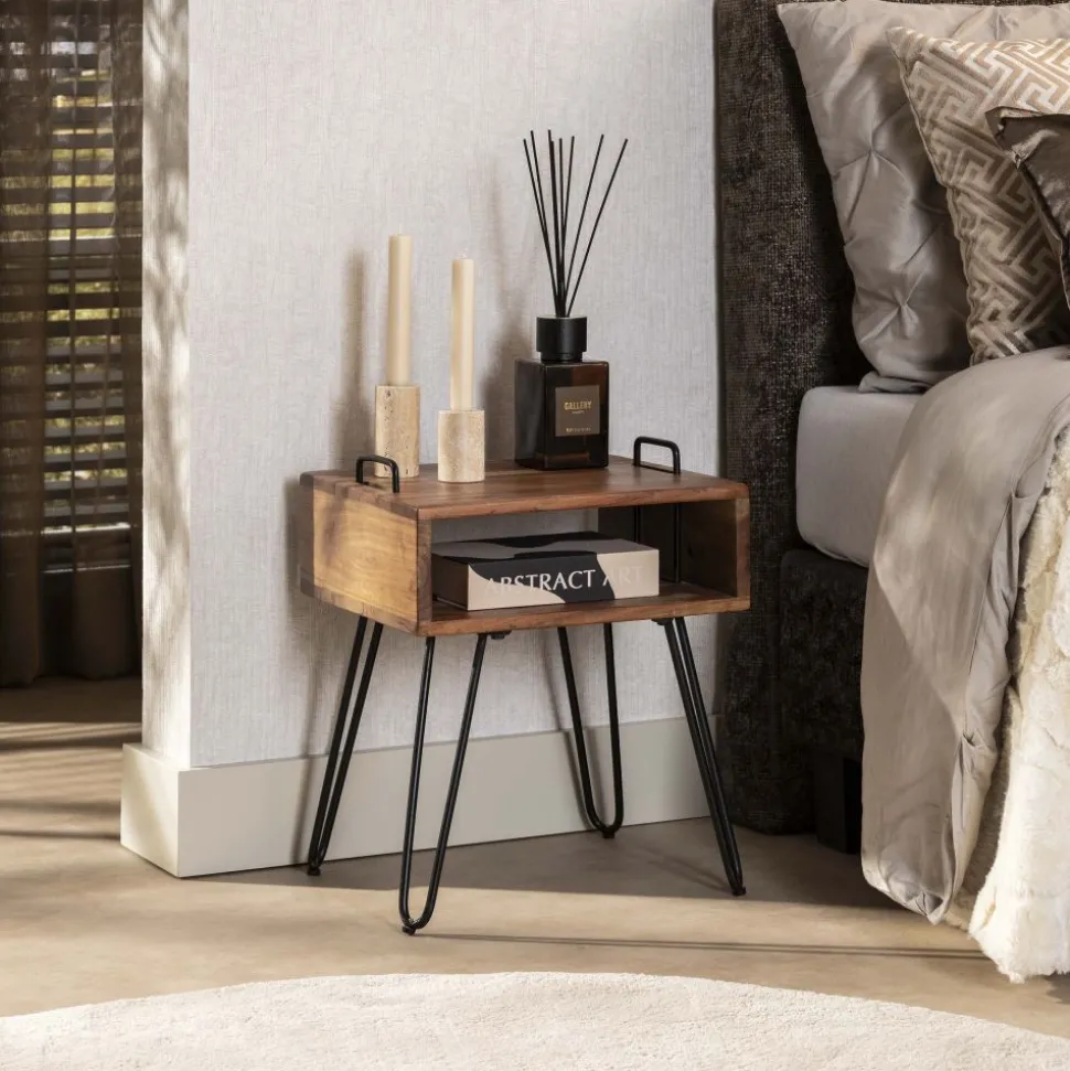 Nachtkastje Quadro / Massief acacia naturelDit product is onderdeel van onze WEB ONLY serie. Deze serie is alleen verkrijgbaar in onze webshop en staat niet in onze showrooms