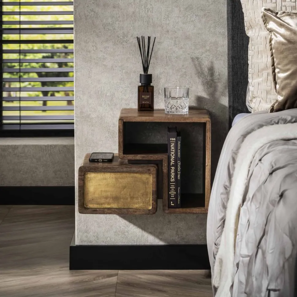 Nachtkastje Set/2 brass / Massief mango zandkleur