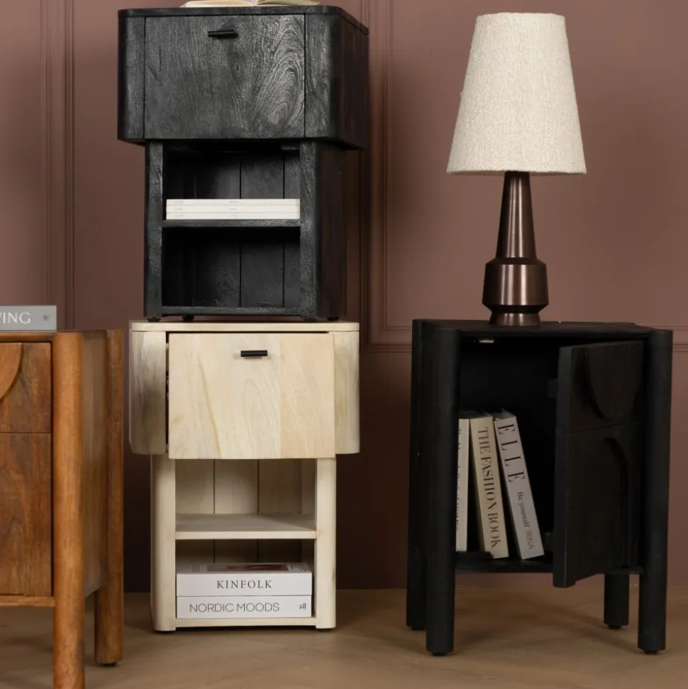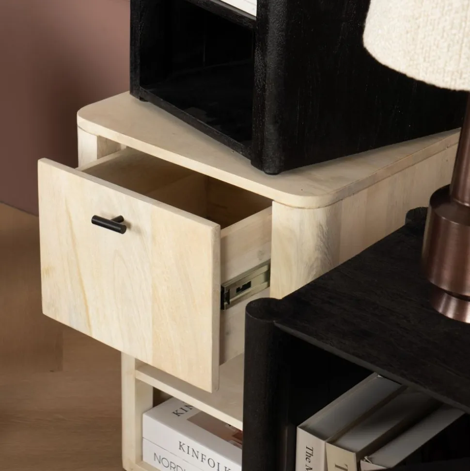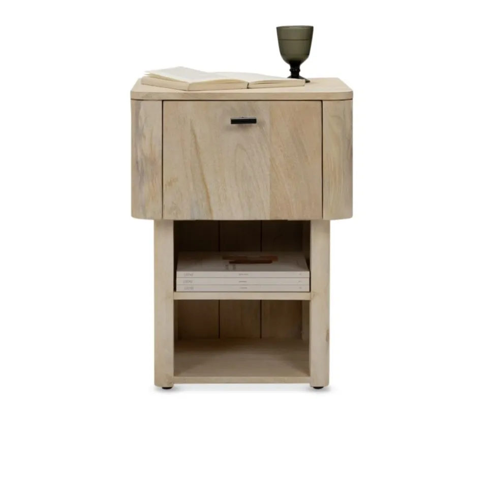 Voorzien van een handige opberglade en twee open vakken biedt Sofia volop ruimte voor je favoriete boek, leeslampje of andere nachtkastspulletjes. De subtiele metalen greep en afgeronde hoeken geven het geheel een moderne, verfijnde uitstraling.