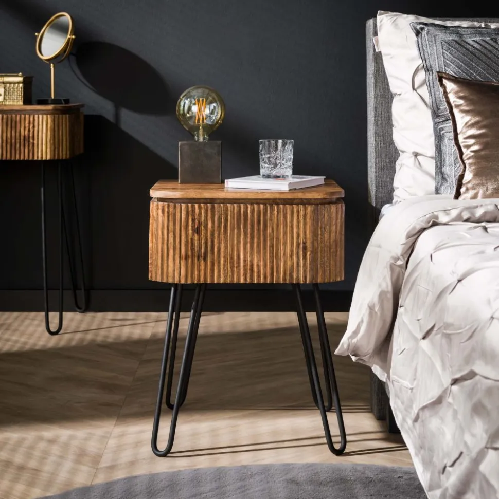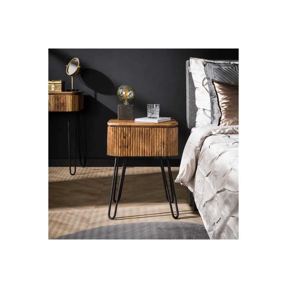 Nachtkastje 1L wave / Massief mango zandkleur