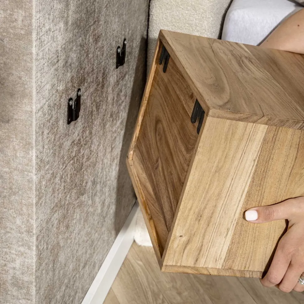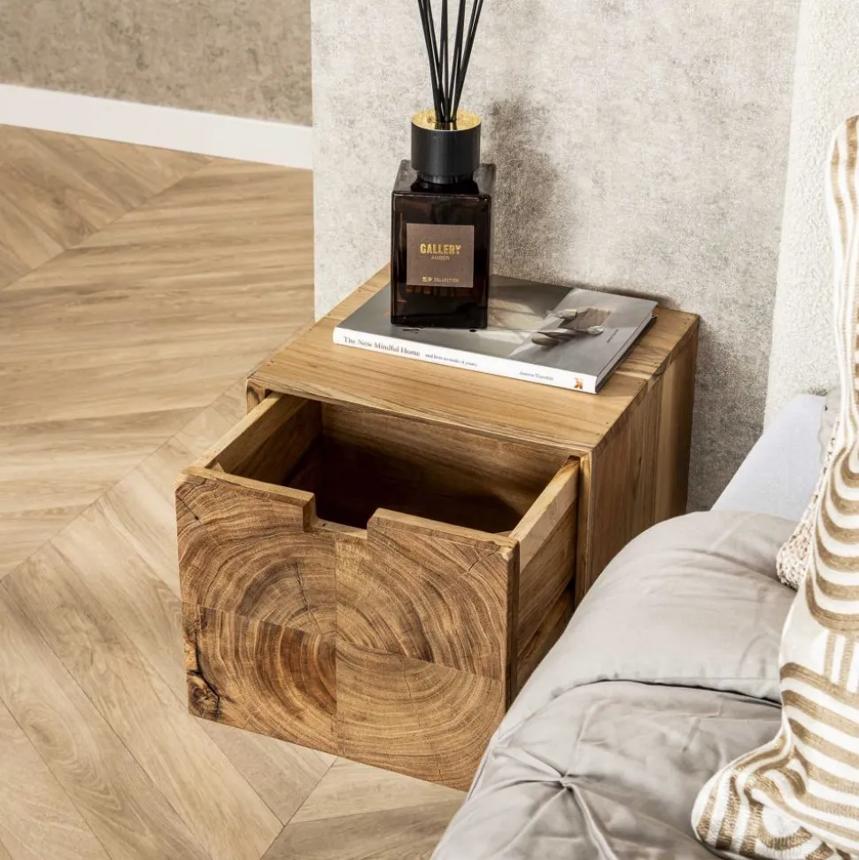 Nachtkastje 1L block zwevend / Massief acacia naturel