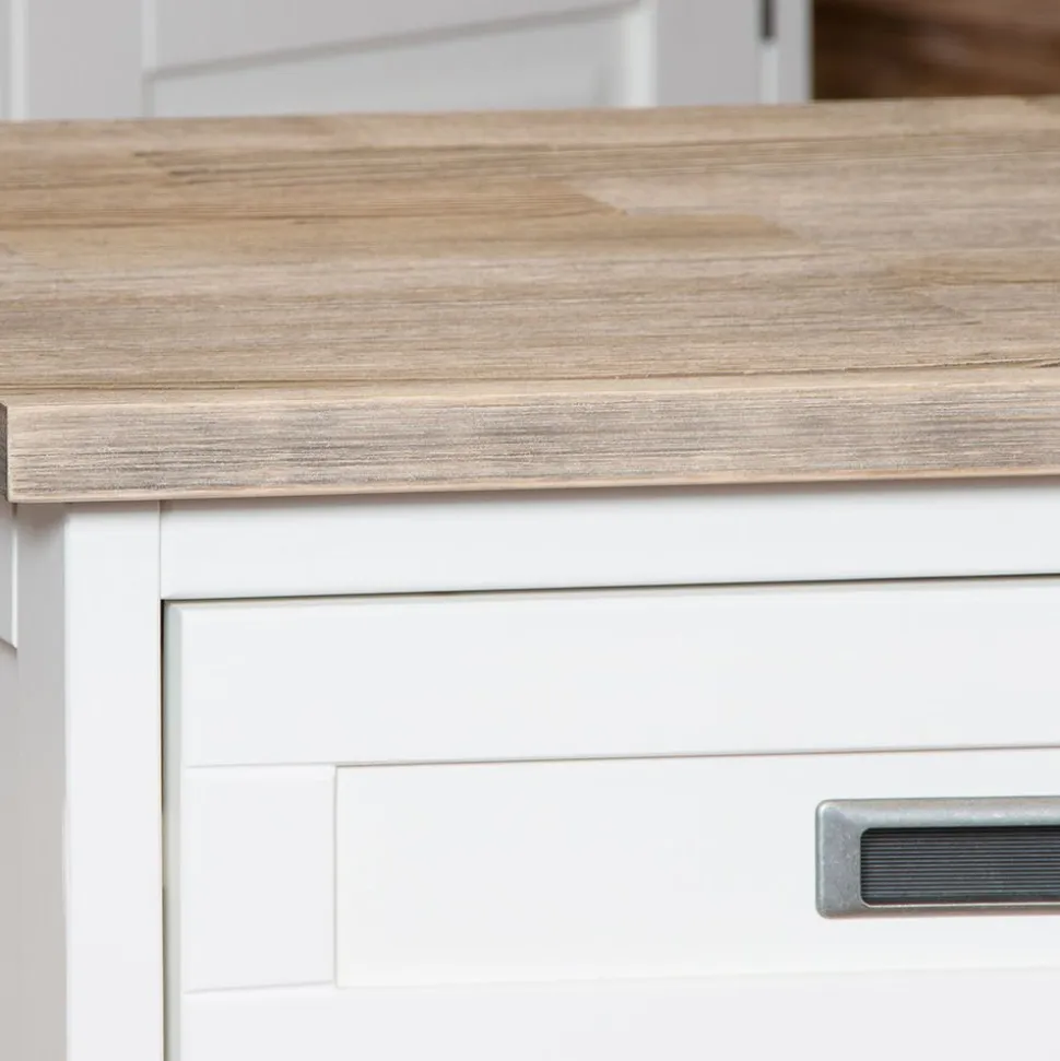 Dit artikel is onderdeel van woonserie Florence. De serie is vervaardigd van massief old pinewood, wit geverfd en voorzien van een bruin bovenblad. De handgrepen zijn netjes ingefreesd en de deurtjes van deze woonkamer meubelen zijn voorzien van een slot met sleutel. Deze serie past in een landelijk of modern interieur.